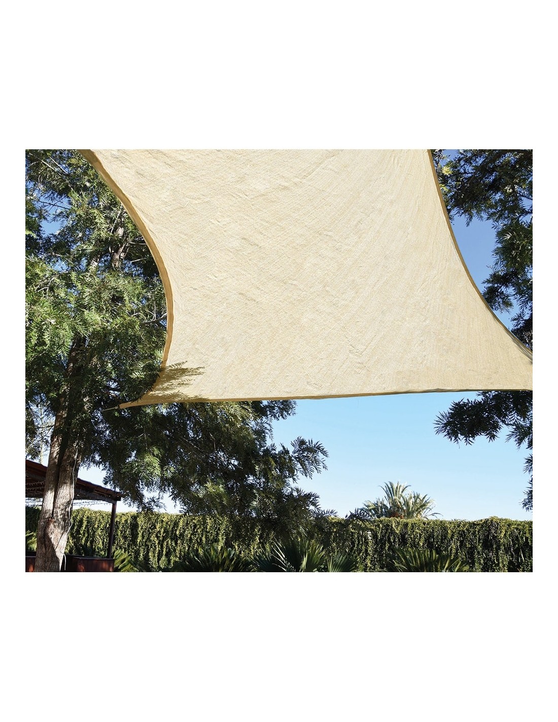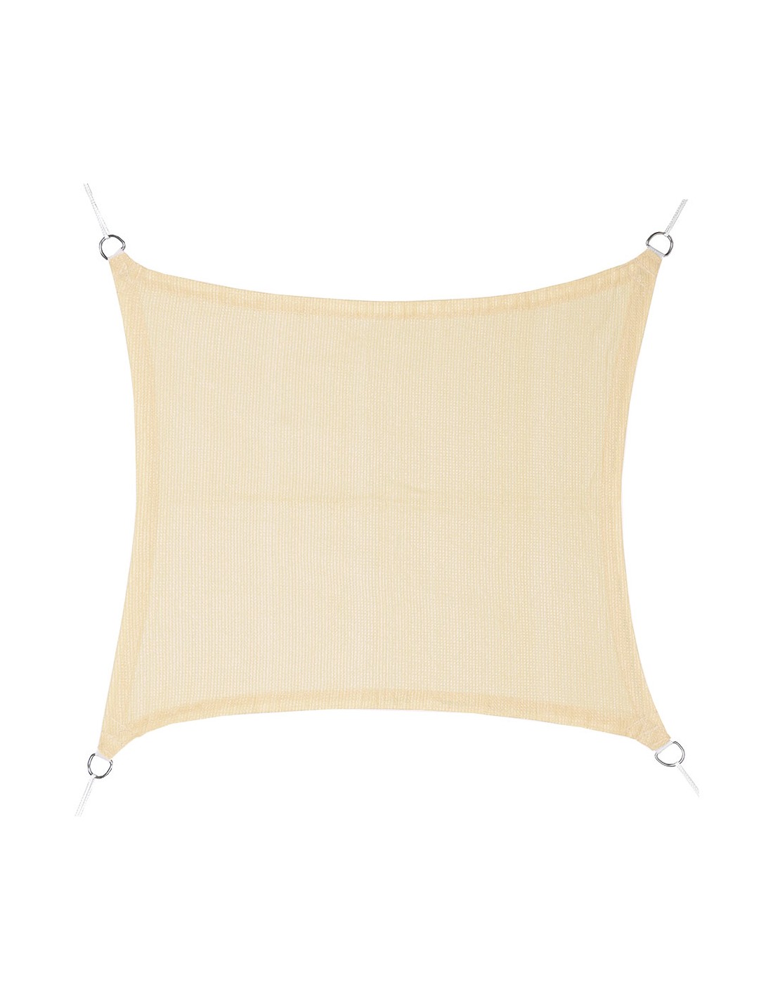 Toldo vela cuadrado beige, material polietileno, contiene anillas de acero inoxidable y cuerda. tratamiento anti-uv. ocultación del tejido 100%. dimensiones: cuerda 25 mm, anillas 6 x 50 mm, total 5 x 5 m