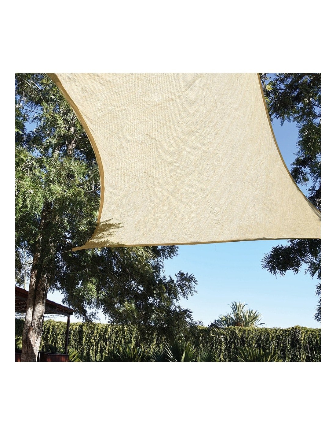 Toldo vela rectangular beige, material polietileno, contiene anillas de acero inoxidable y cuerda. tratamiento anti-uv. ocultación del tejido 100%. dimensiones: cuerda 25 mm, anillas 6 x 50 mm, total 3 x 4 m