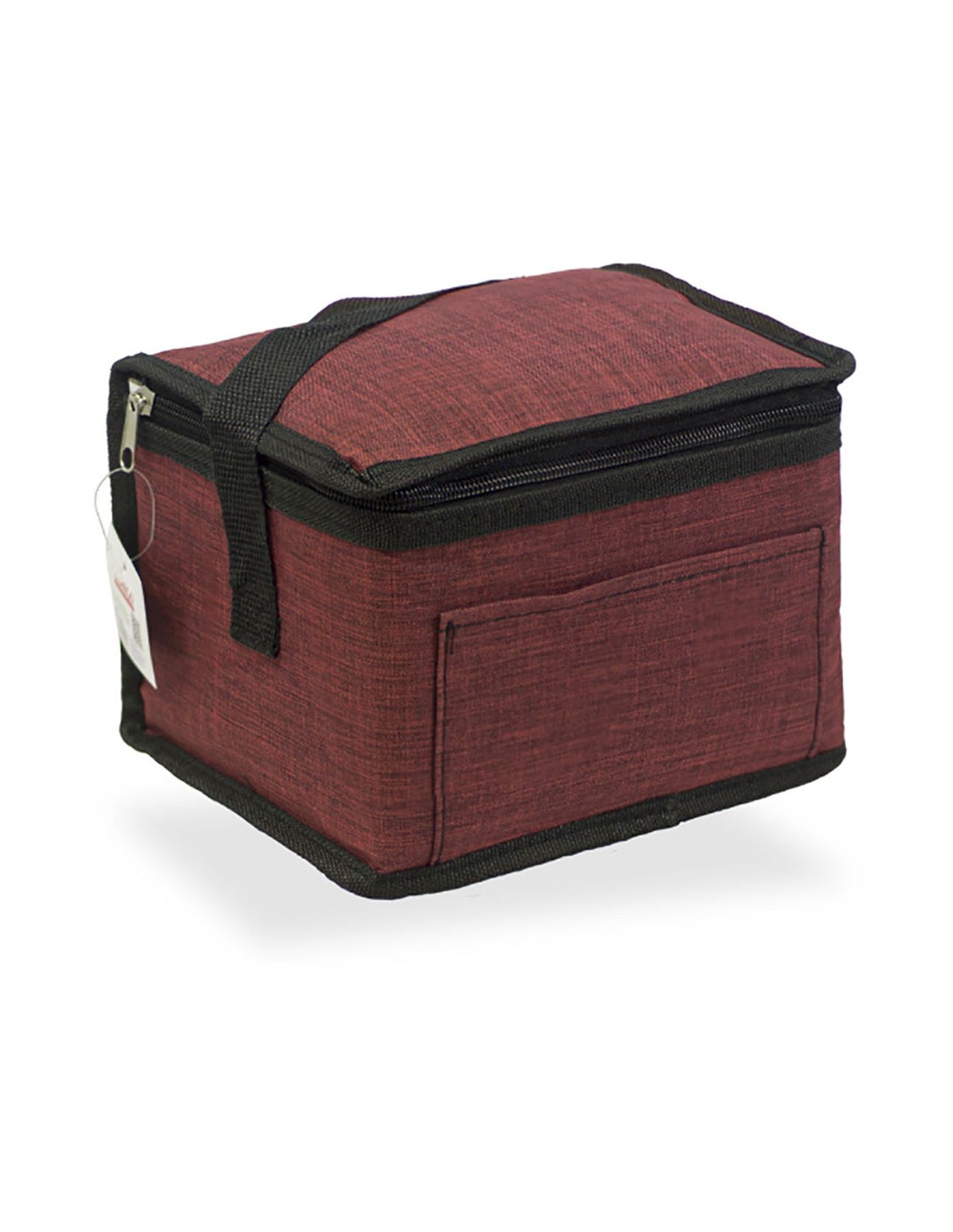 Nevera diseño tejana, color granate. 4,5 l. con correa ajustable, con aislamiento de capa de alu film y plástico protector, revestimiento con isotérmico epe de 5 mm. medidas: 20 x 15 x 15 cm