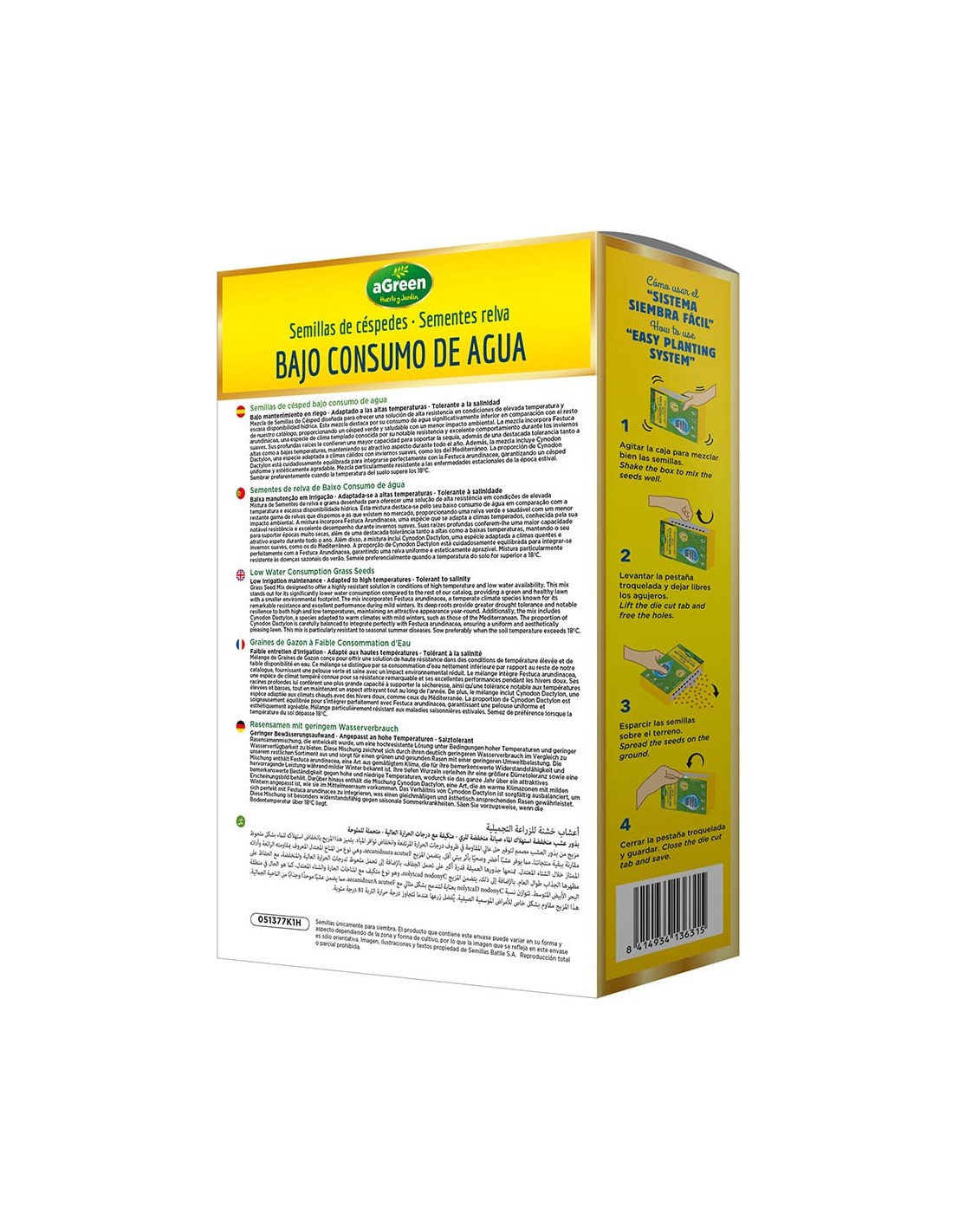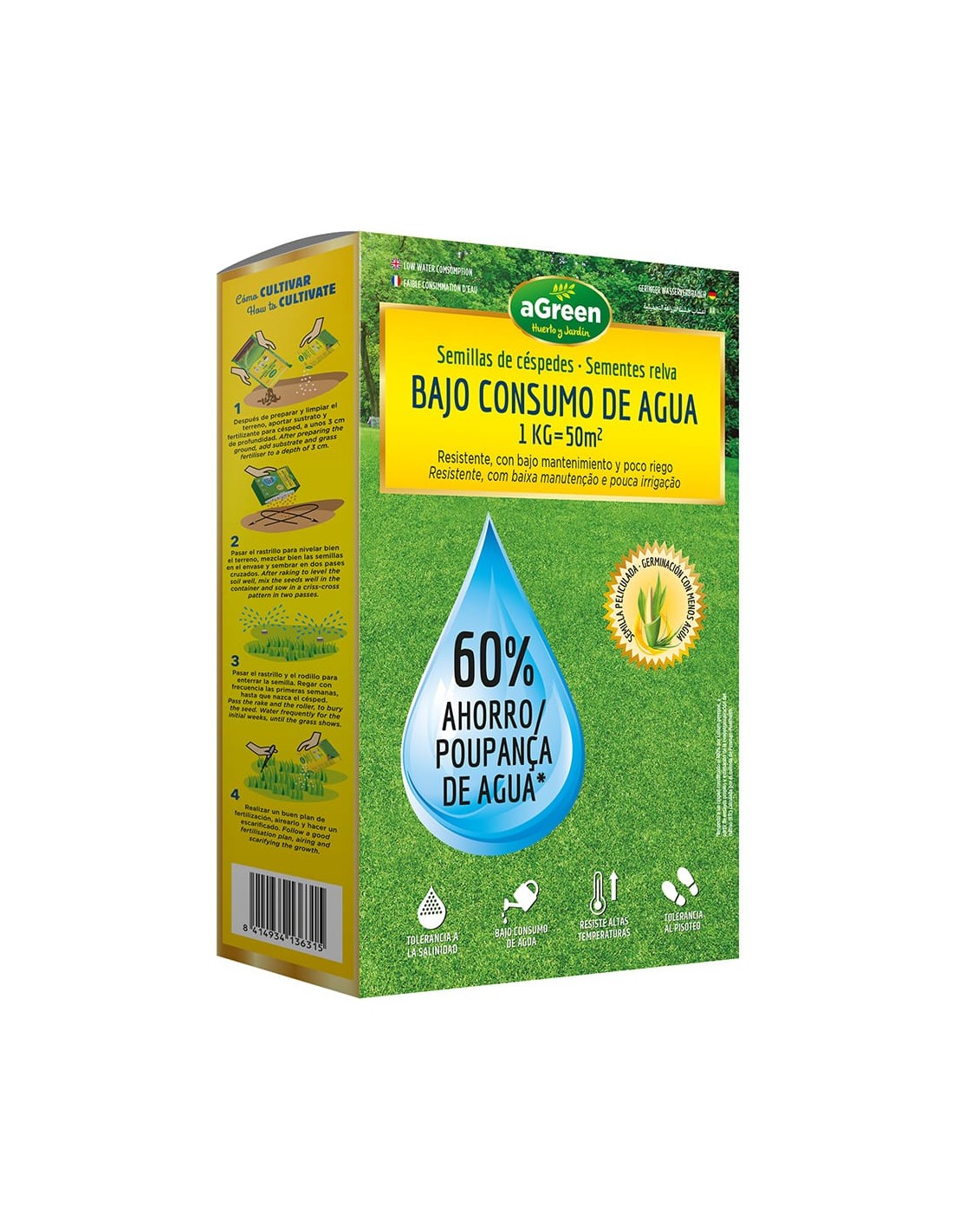 Semillas de céspedes bajo consumo de agua 1 kg 50 m2 60% ahorro de agua diseñada para ofrecer una solución de alta resistencia en condiciones de elevada temperatura y escasa disponibilidad hídrica proporcionando un césped verde y saludable con un menor impacto ambiental