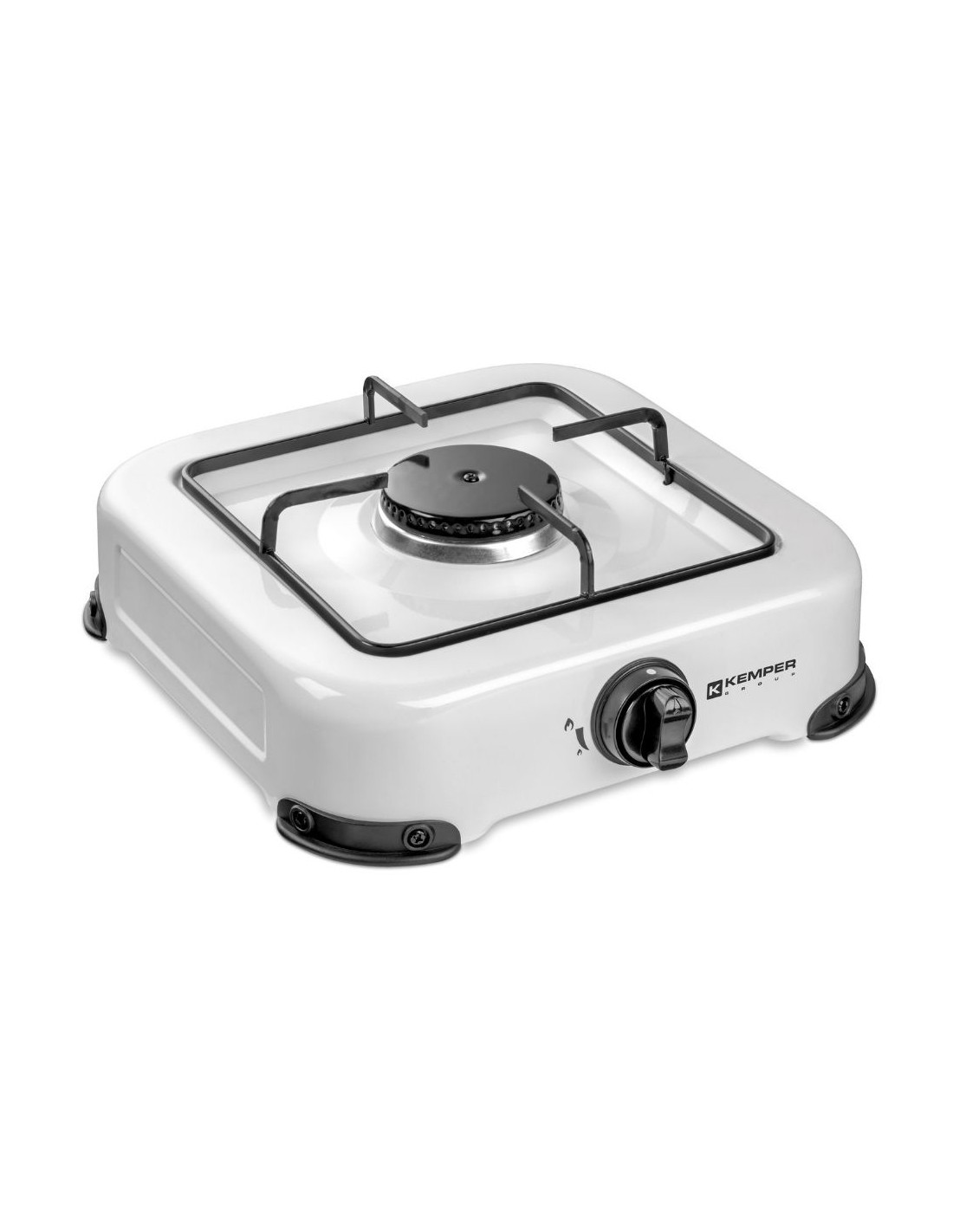 Cocina de gas butano/propano con un quemador, de acero inoxidable, de alta potencia. estable y robusta, con tapa y parrilla extraíble para una limpieza óptima soporte giratorio para tubo, cubrepatas de plástico antideslizantes el quemador está firmemente fijado para facilitar su transporte color blanco potencia: 1,2 kw 270 x 300 x 90 mm