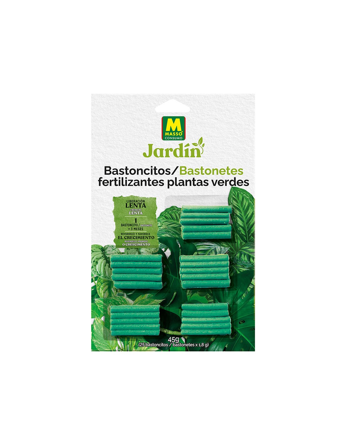 Abono rico en fósforo, potasio, magnesio y hierro, con nitrógeno de liberación lenta. para todas las plantas verdes en maceta o jardinera de interior y exterior. durante 3 meses, los bastoncitos liberan progresivamente el fertilizante sin riesgo de quemaduras. n.p.k. 12-7-7 + 2,5% mg con hierro que contiene urea formaldehído. dosificación: 1ud/maceta de 8 cm ø. periodo de aplicación: todo el año