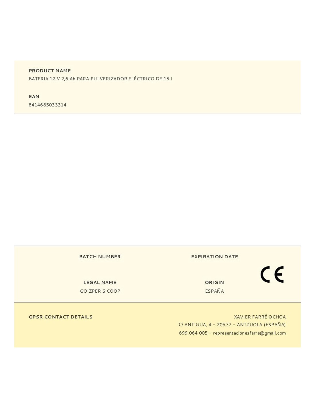 Bateria 12 v para pulverizador eléctrico 15 l