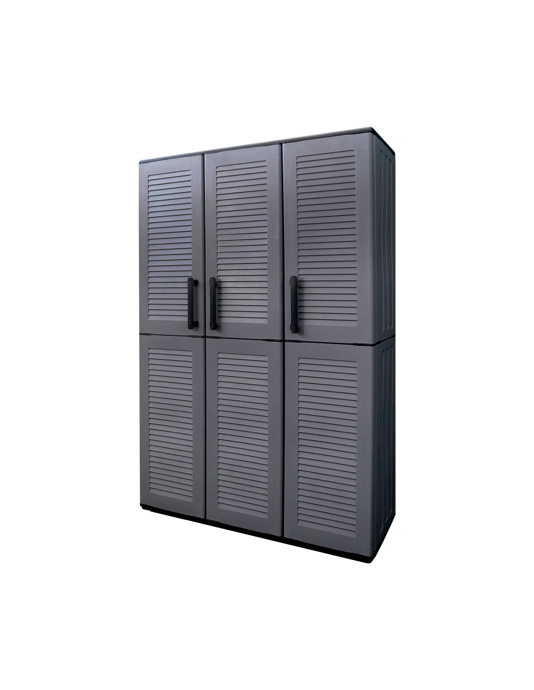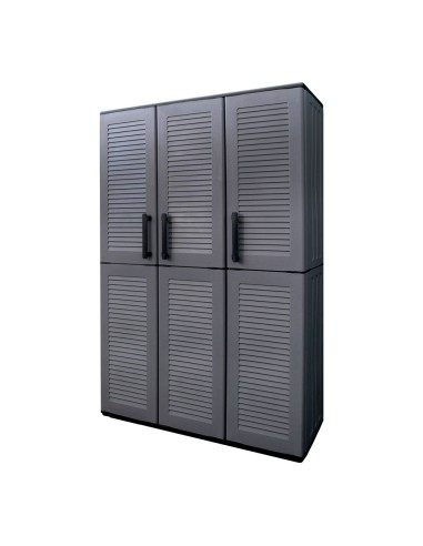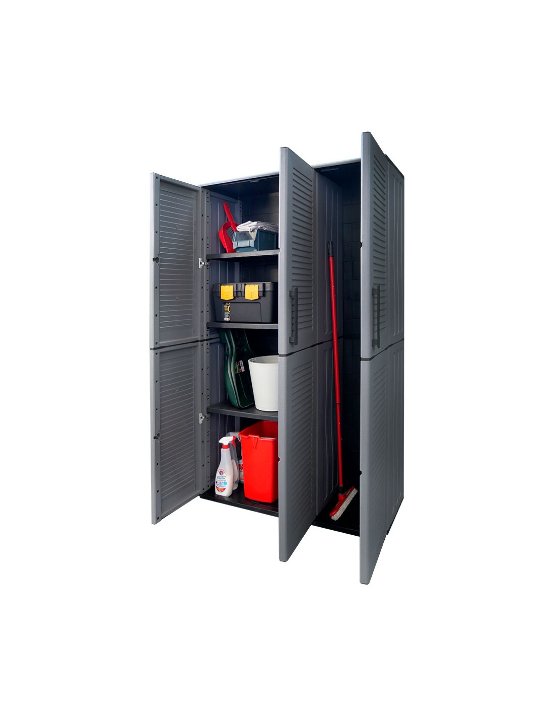 Armario alto fabricado en polipropileno, compartimento con estantes ajustables y un portaescobas, material reciclable, equipado con bisagras de acero y estante interior regulable, capacidad de carga 10 kg por estante, gris oscuro, 102 x 370 x 163 cm