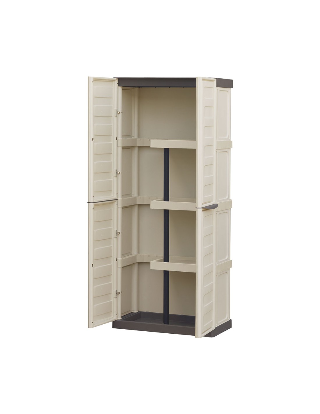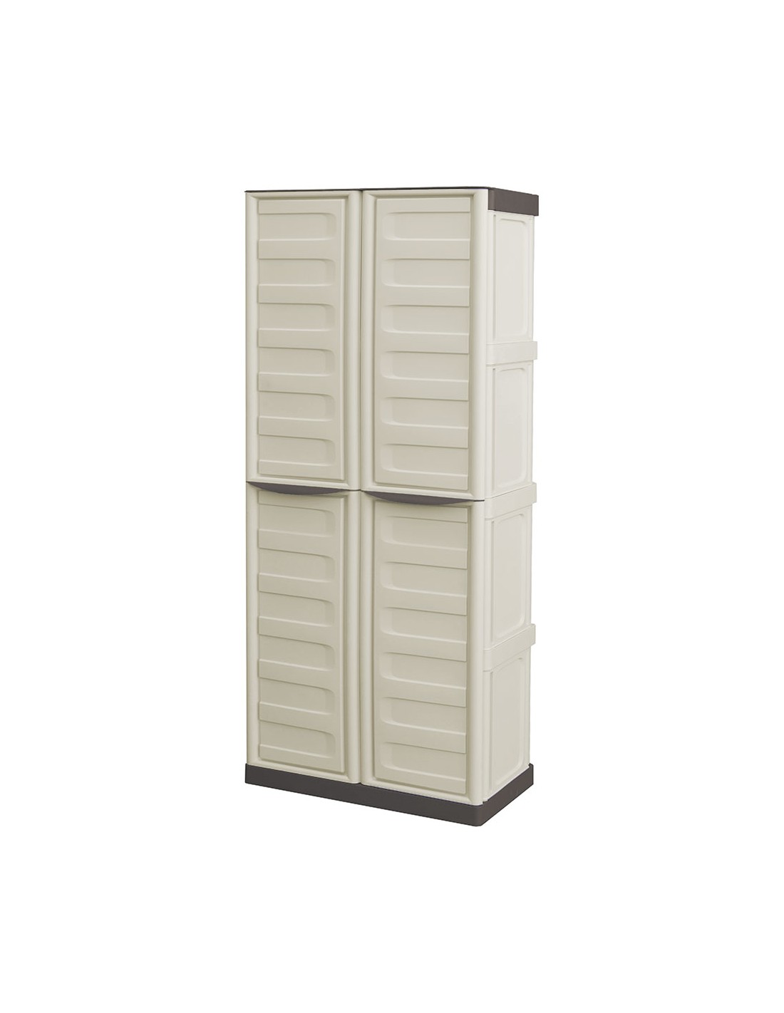 Mueble alto de polipropileno para escobas, material reciclable, color beige y marrón, equipado con bisagras de acero, capacidad de carga de 25 kg por estante, 70 x 39 x 165 cm