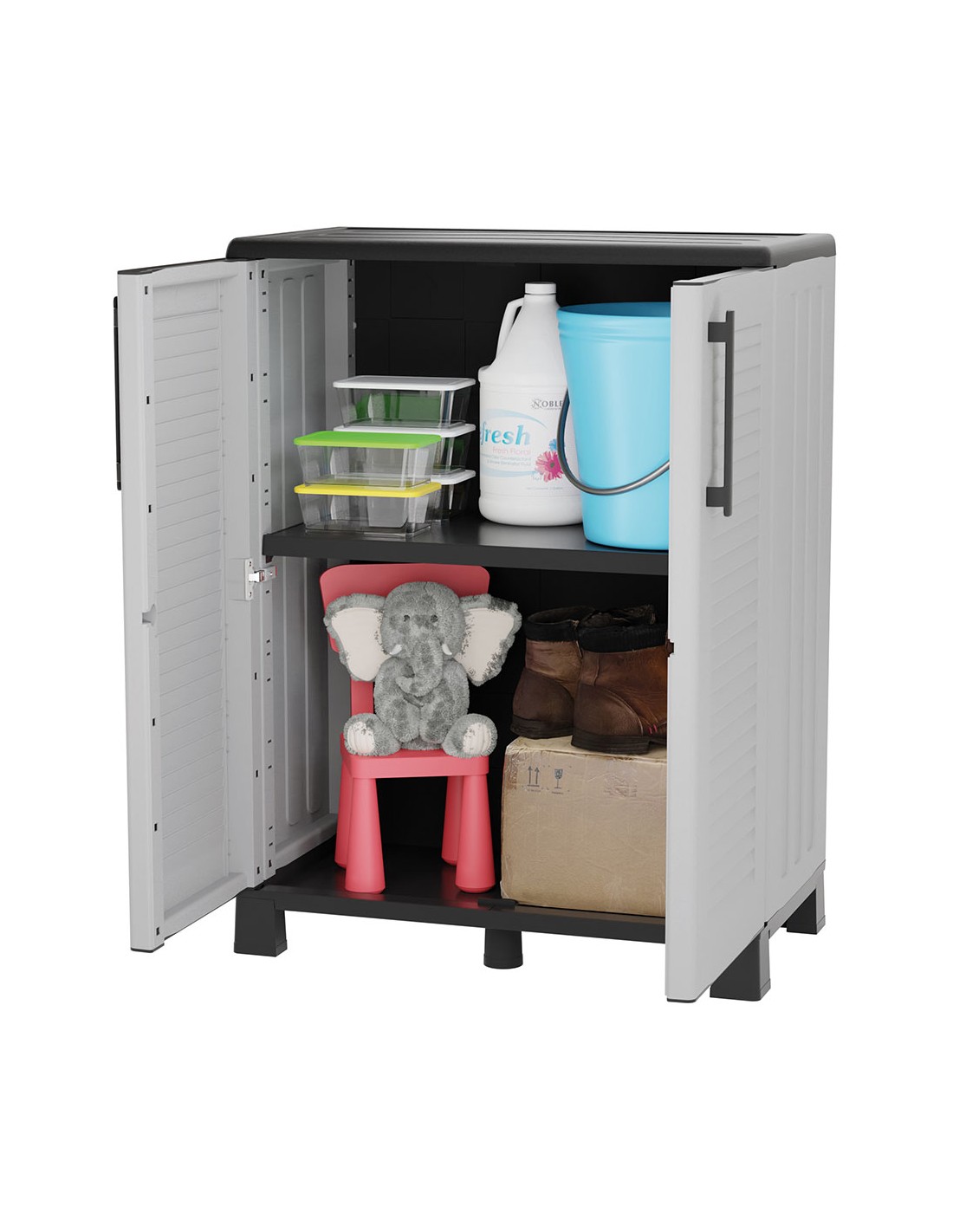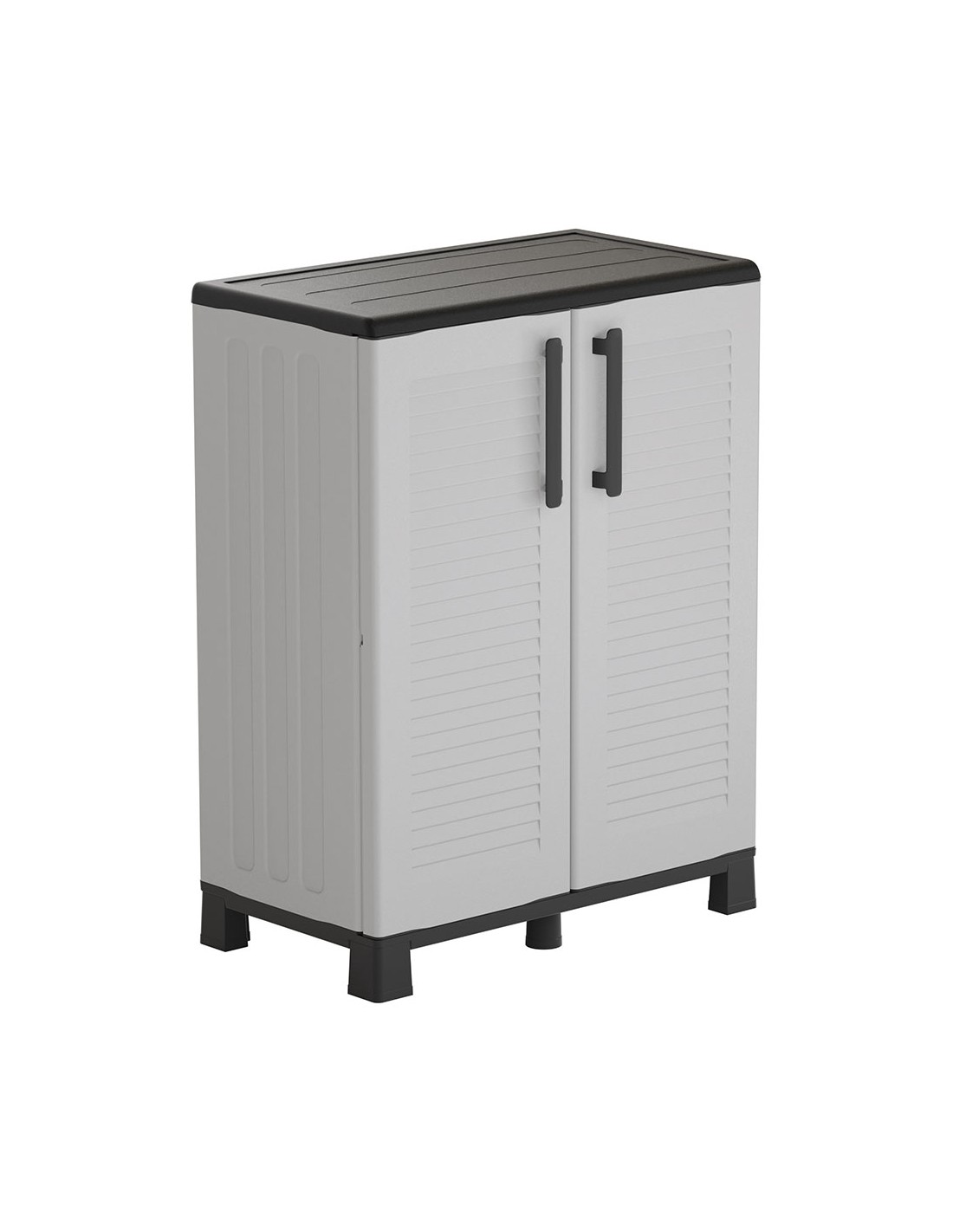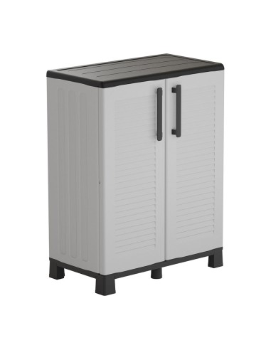 Armario bajo gris fabricado en polipropileno con patas, material reciclable, equipado con bisagras de acero, estante interior ajustable y patas, capacidad de carga: 20 kg por estante dimensiones 680 x 370 x 900 mm