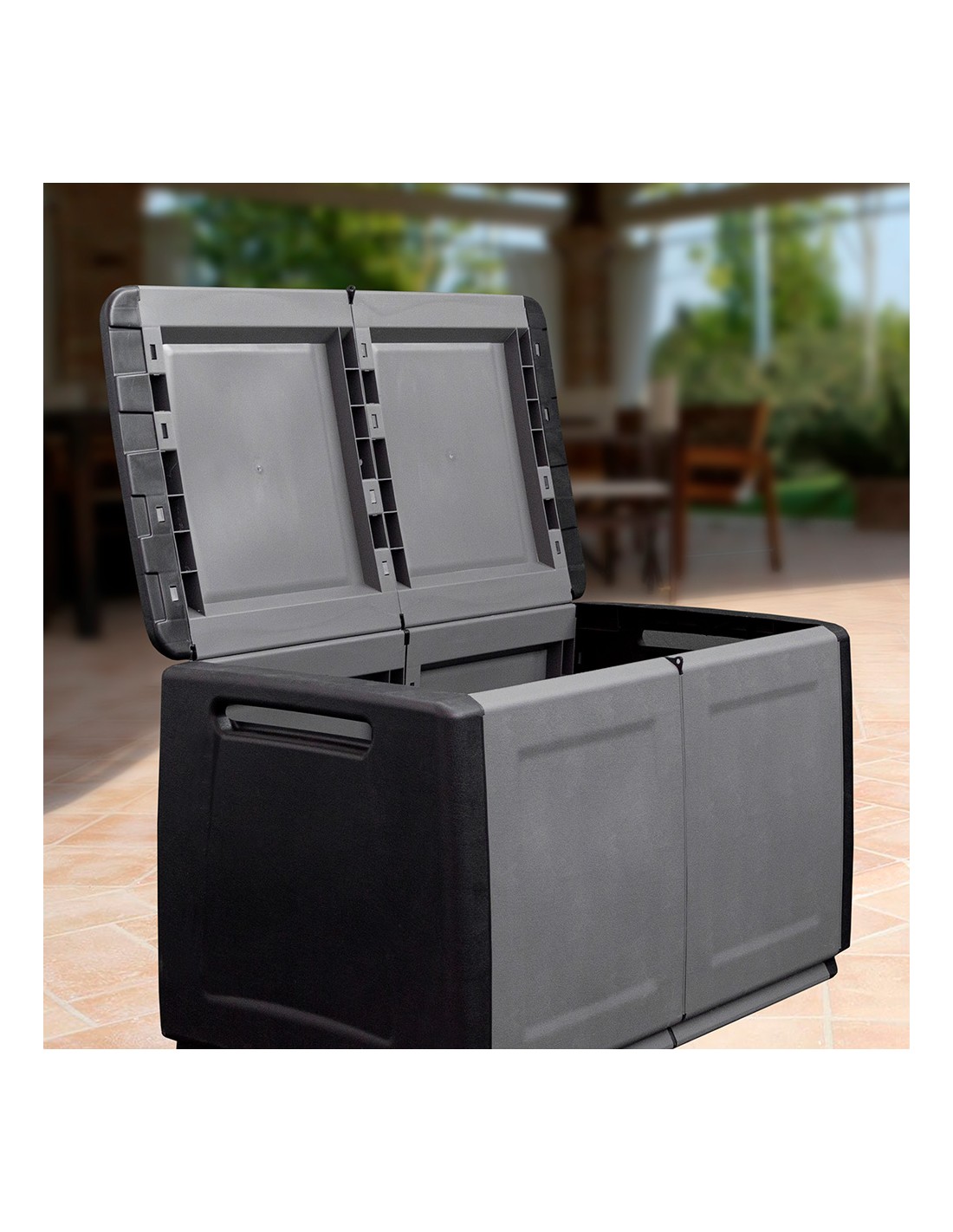 Baúl multiuso, capacidad 230 l, con orificio para candado, gris oscuro, 96 x 53 x 57 cm