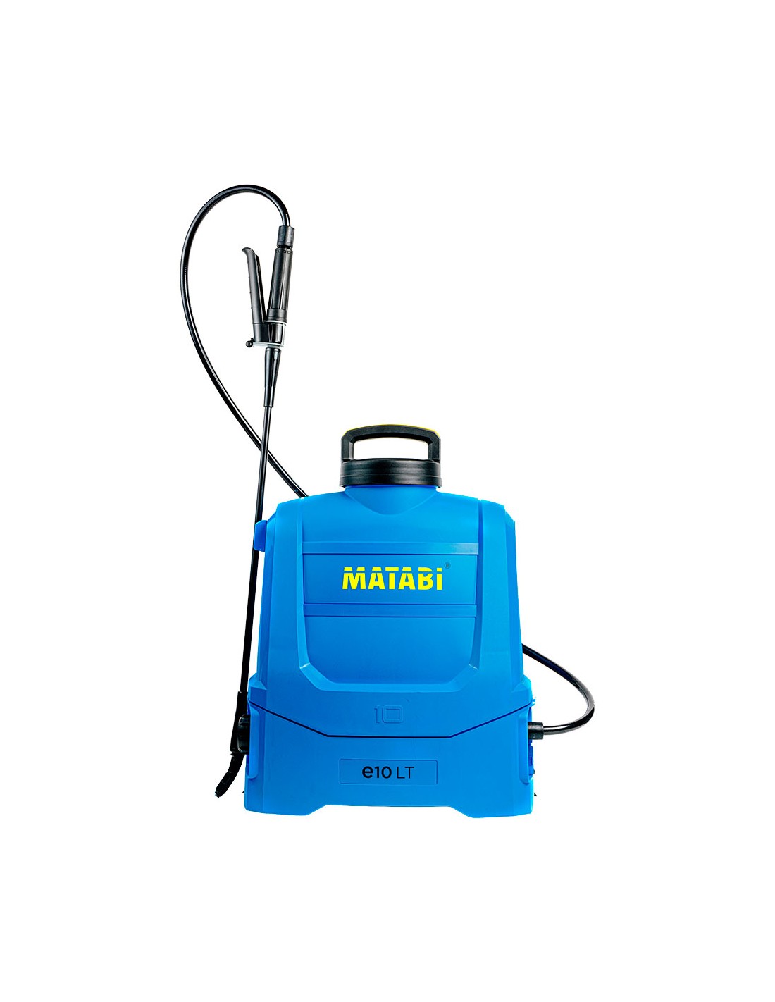 Pulverizador eléctrico para jardín y huerto tipo mochila 10 l, con batería de 12 v. batería de fácil extracción. con autonomía de 15 depósitos / 150 l. correas acolchadas y regulables, manguera reforzada. lanza en fibra de vidrio, filtro de protección de la bomba con fácil acceso para su limpieza, visor de nivel de líquido, depósito ergonómico, capacidad total y útil 10 l. incluye: 2 boquillas (1 x herbicida, 1 x insecticida + fungicida), batería + cargador y vaso medidor