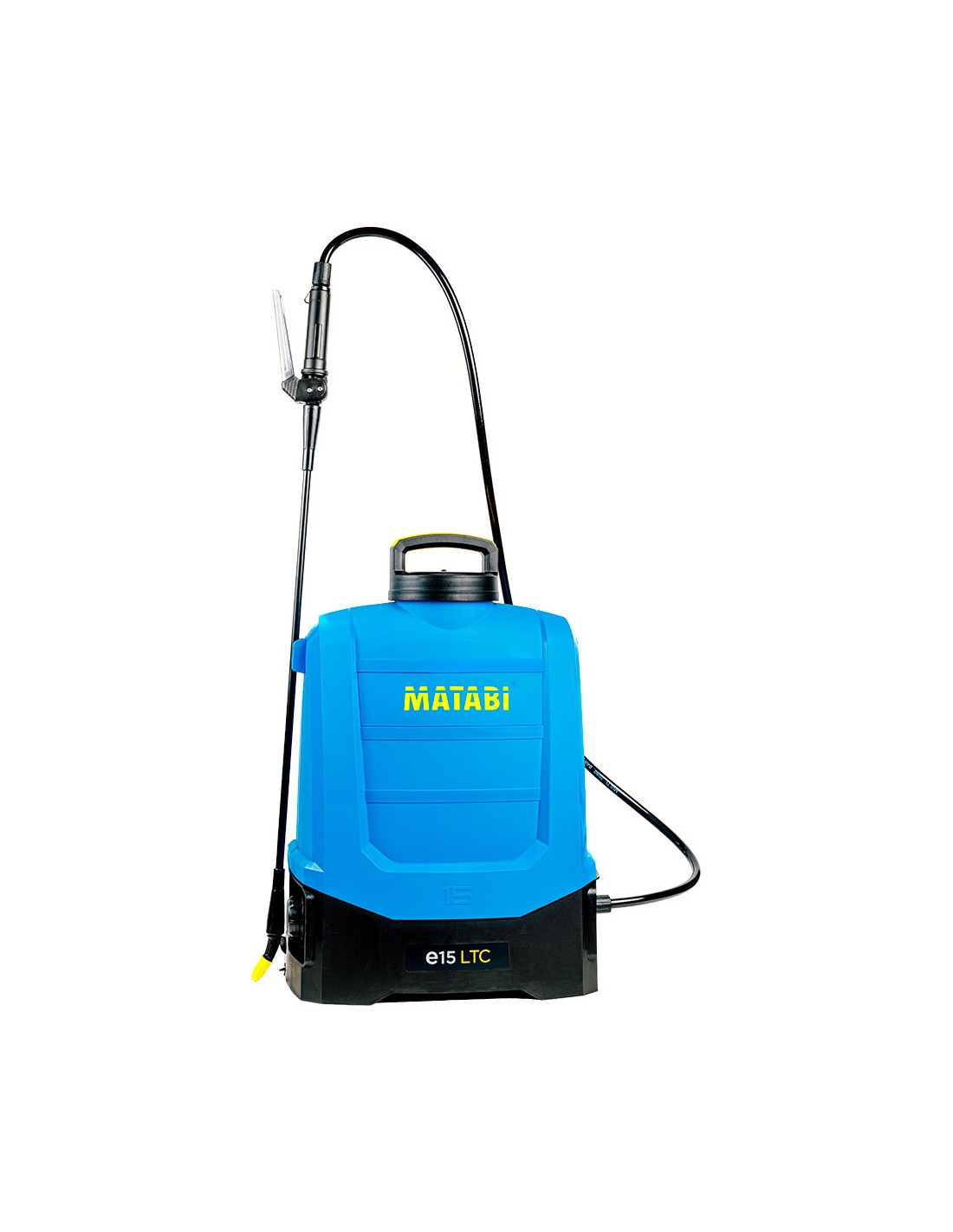 Pulverizador eléctrico para jardín y huerto tipo mochila 15 l, con batería de 20 v, batería de fácil extracción, con autonomía de 25 depósitos / 180 - 375 l, correas acolchadas y regulables y con cierre en pechera, manguera reforzada, lanza en fibra de vidrio, filtro de protección de la bomba con fácil acceso para su limpieza, visor de nivel de líquido, depósito ergonómico, capacidad total y útil 15 l, incluye: 4 boquillas (2 x herbicida, 2 x insecticida + fungicida), batería + cargador y vaso medidor