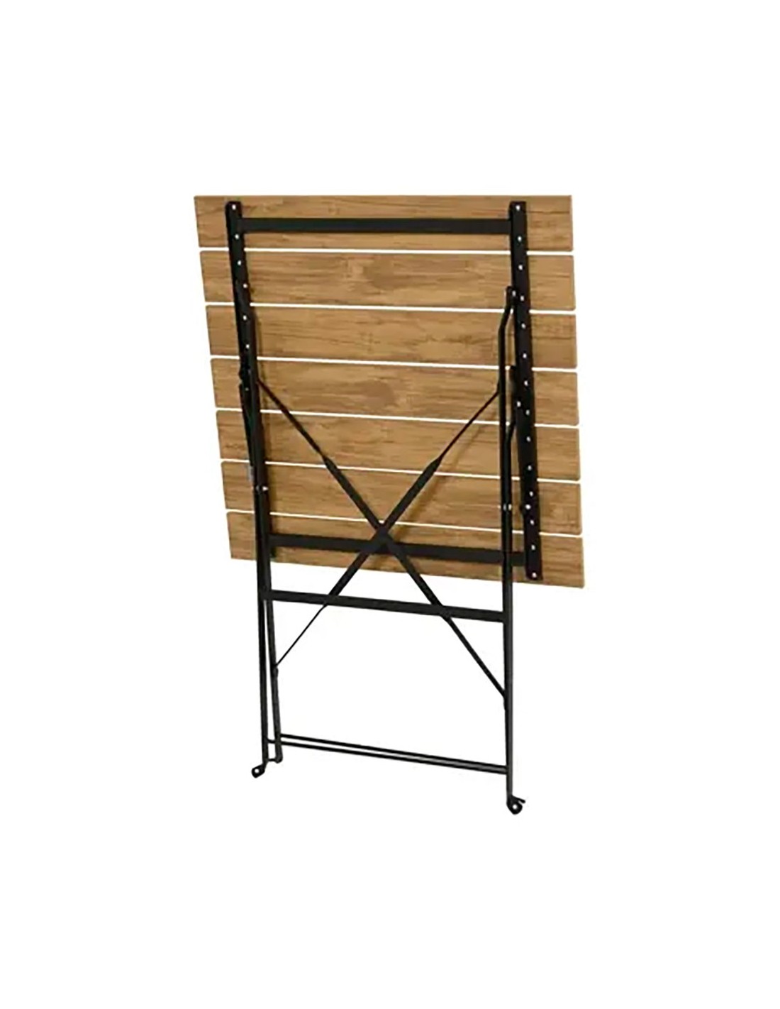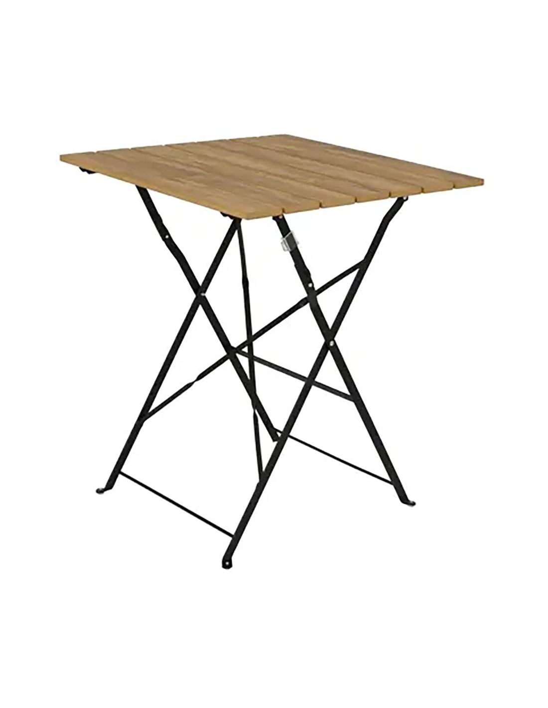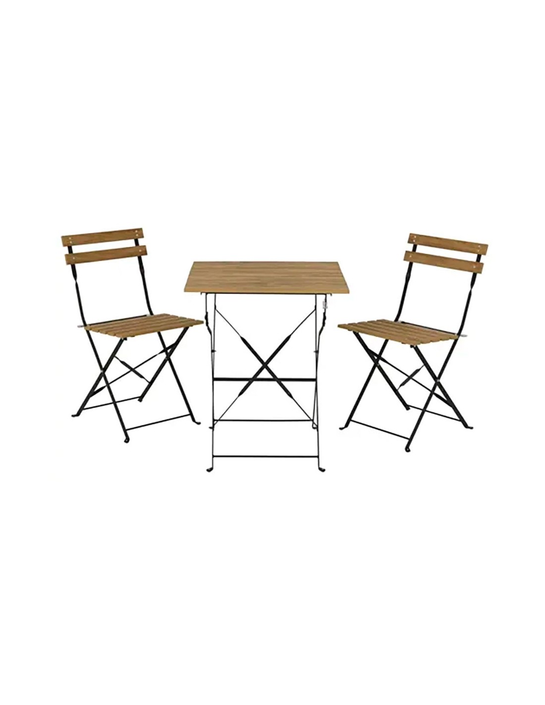 Conjunto de mesa y 2 sillas leeds marrón de acero y madera sintética, plegables. dimensiones silla 46 x 41 x 80 cm / mesa 60 x 60 x 72 cm
