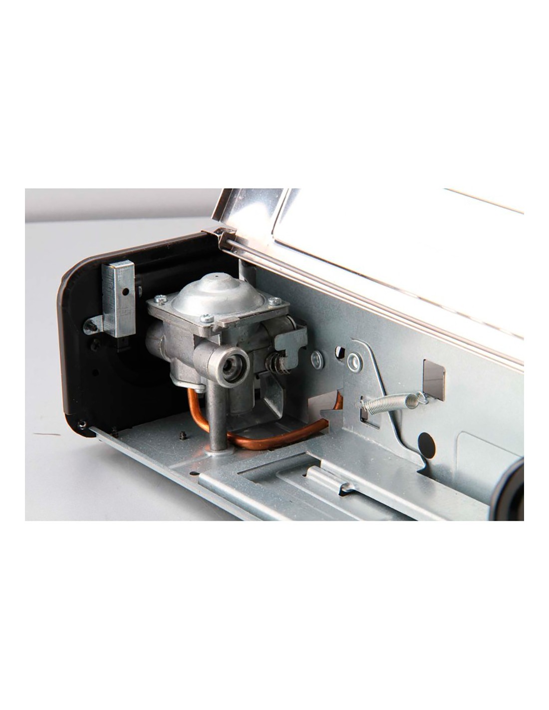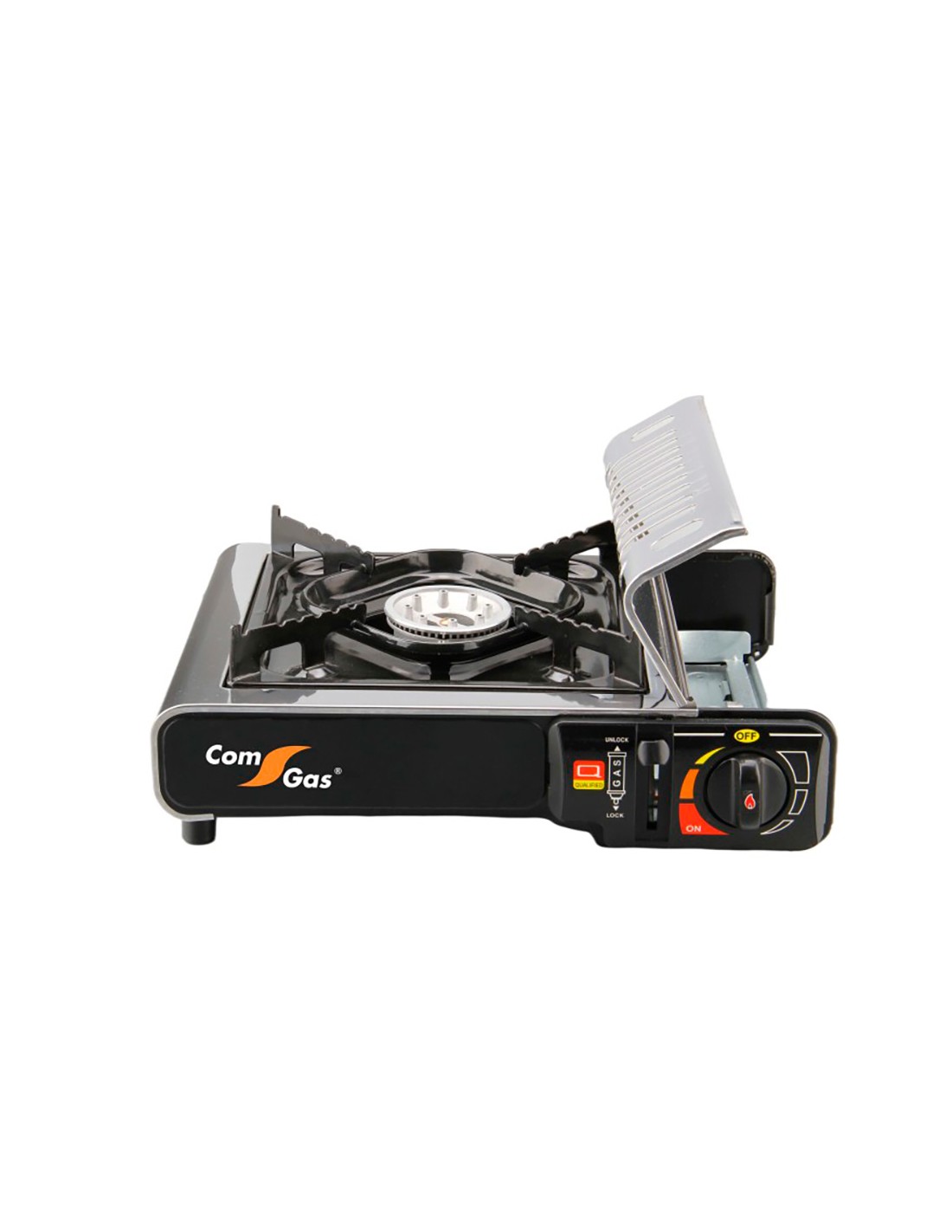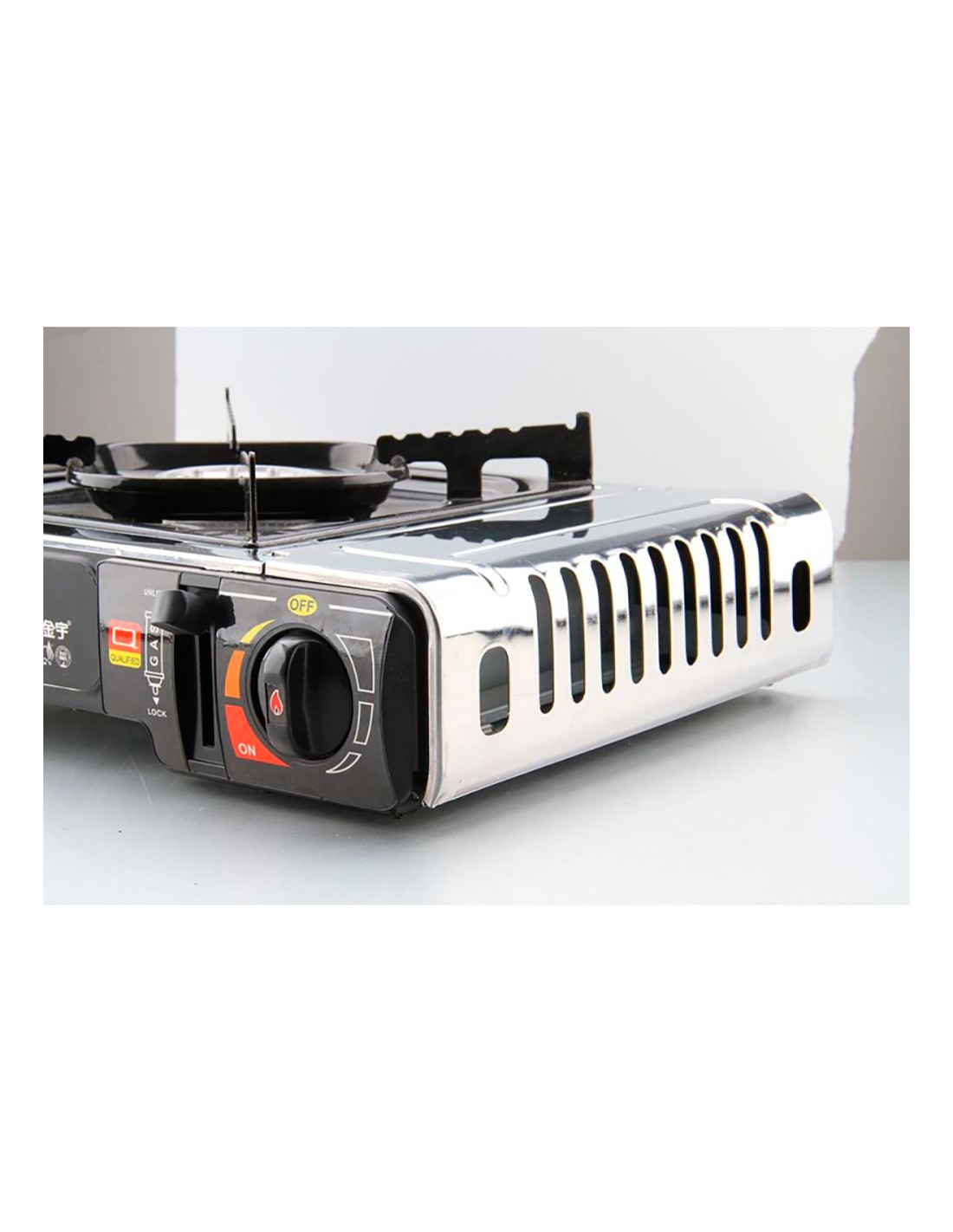 Cocina portátil de gas compacta, con una apertura para cartuchos de gas 227 g (no incluido), 2,2 kw, consumo nominal 160 g/h, con válvula de sobrepresión de doble seguridad. incluye parrilla fija y maletín de plástico. material acero inoxidable. modelo adaptado a la nueva normativa en 17476