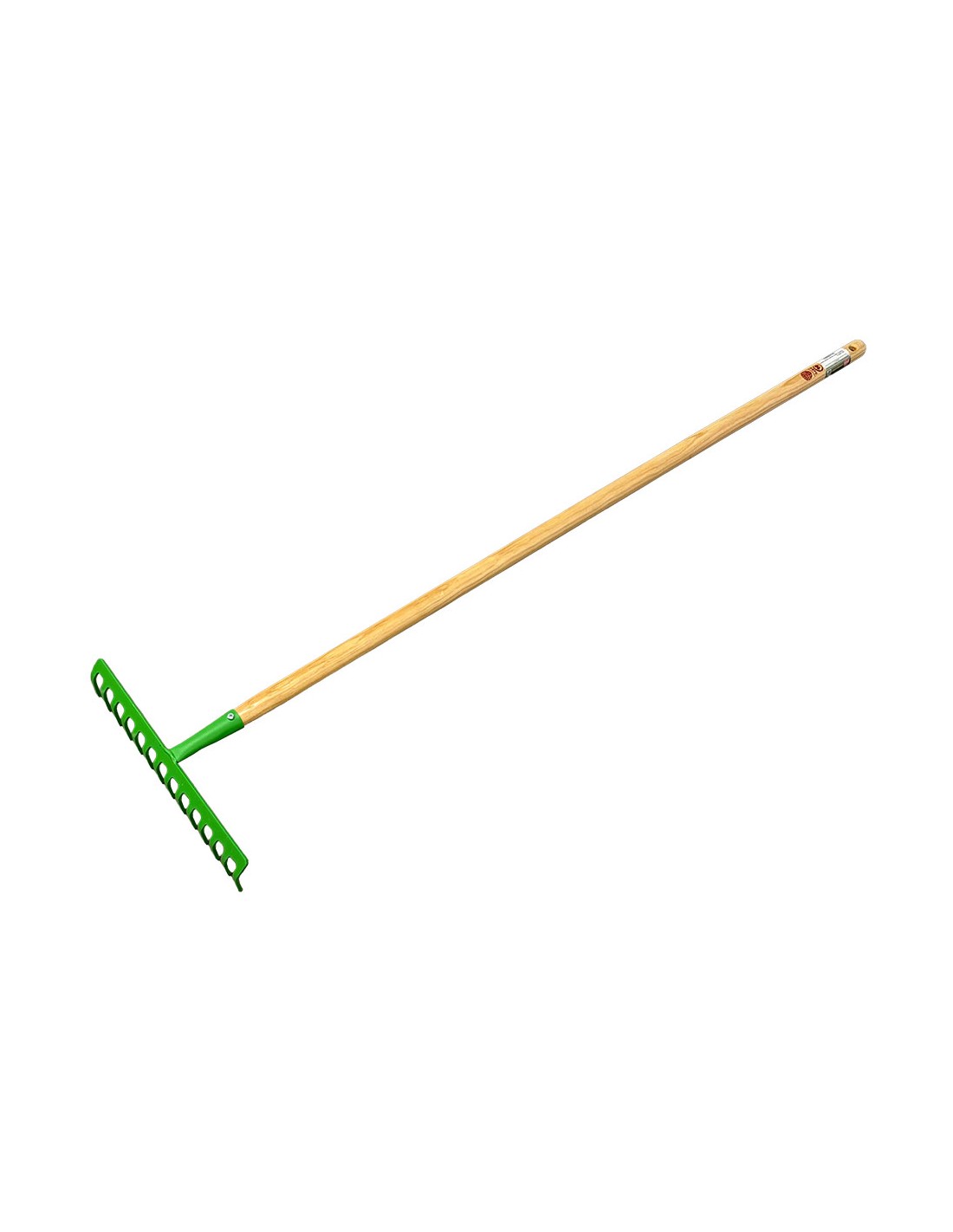 Rastrillo jardín, 14 dientes, color verde, mango de madera 120 cm, dimensiones: 36 x 10 x 128 cm