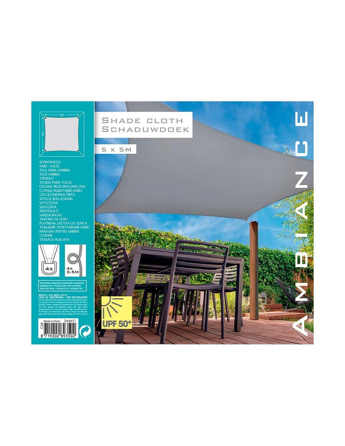 Toldo vela cuadrado color: gris claro 5x5m (ancho/fondo) 150gr/m. spf+50 con ojales de aluminio. 4 cuerdas de 3,5m peso: 3,81kg