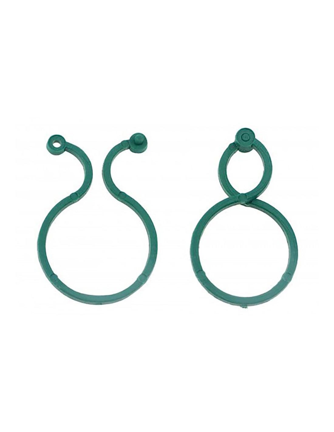 Clips especial doble anillo de pvc para entutorar pequeños árboles, para fijar tallos y ramas a tutores de forma rápida y segura, facilitando el crecimiento recto de las plantas color verde medida: 4 x 2,7 cm blíster 20 uds