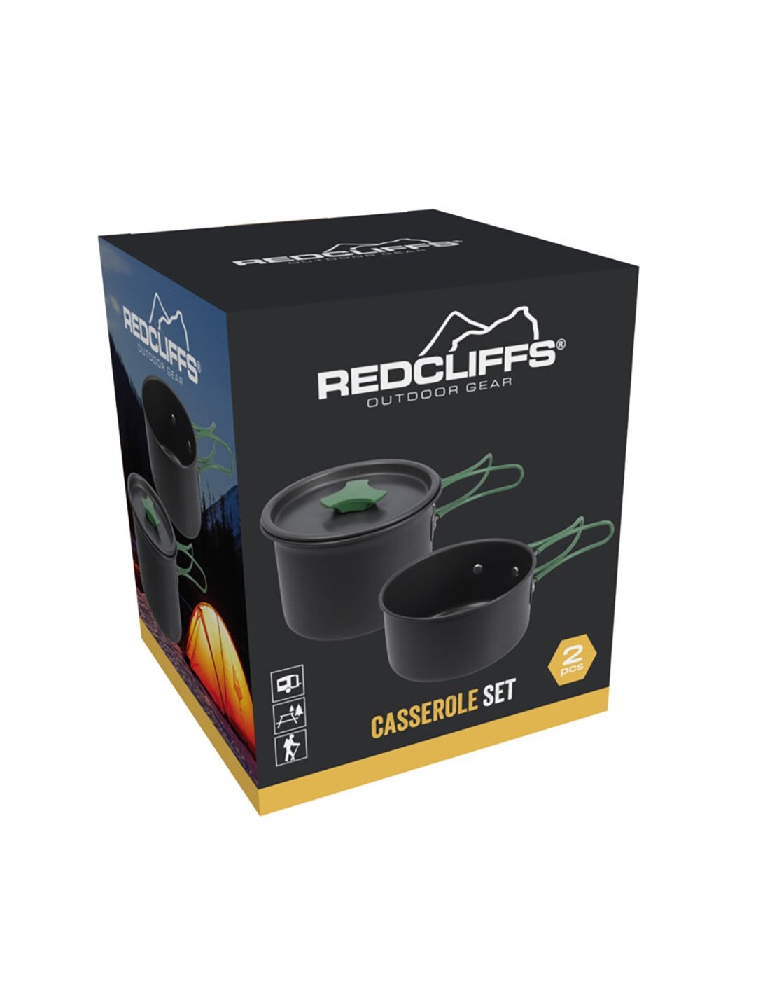 Cacerolas de aluminio anodizado con asas de acero inoxidable. incluye 2 piezas: 1 cacerola ø13 x 9 cm - 950 ml, 1 cacerola ø12 x 6 cm - 550 ml con asas plegables en color verde y una bolsa negra para su almacenamiento