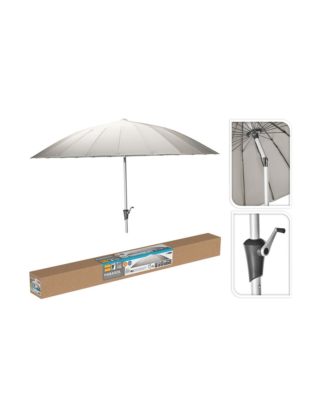 Parasol gris, mástil de aluminio con recubrimiento en polvo gris, 24 varillas de fibra de vidrio, poliéster de 180 g/m, protección uv upf30+ con sistema de apertura por manivela, inclinable. dimensiones: ø280 x 248 cm tubo ø4 cm