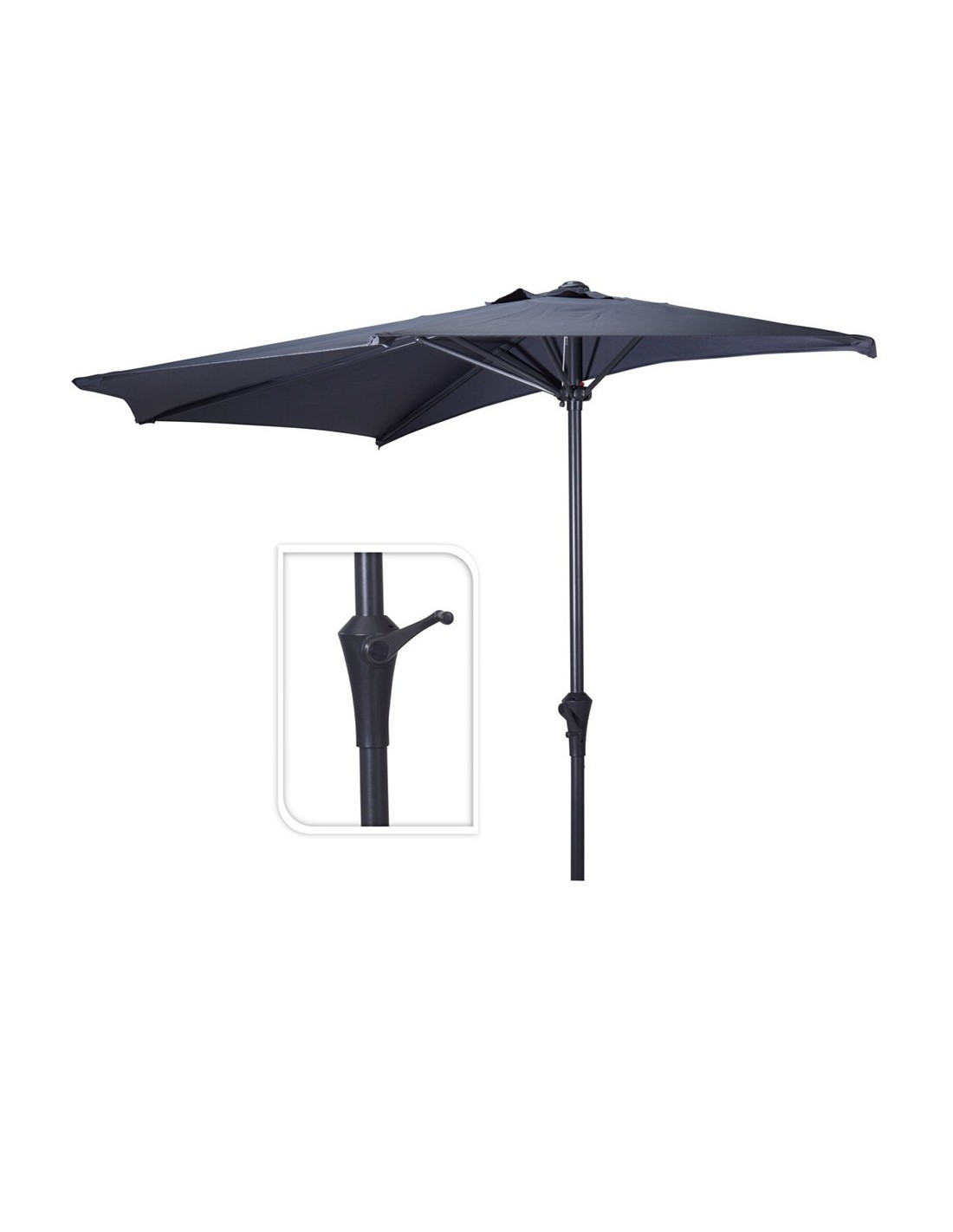 Media sombrilla color antracita ø270 cm, tejido de poliéster con ventilación. varillas de acero de 12 x 18 mm y mástil de acero ø38 mm color antracita con apertura por manivela