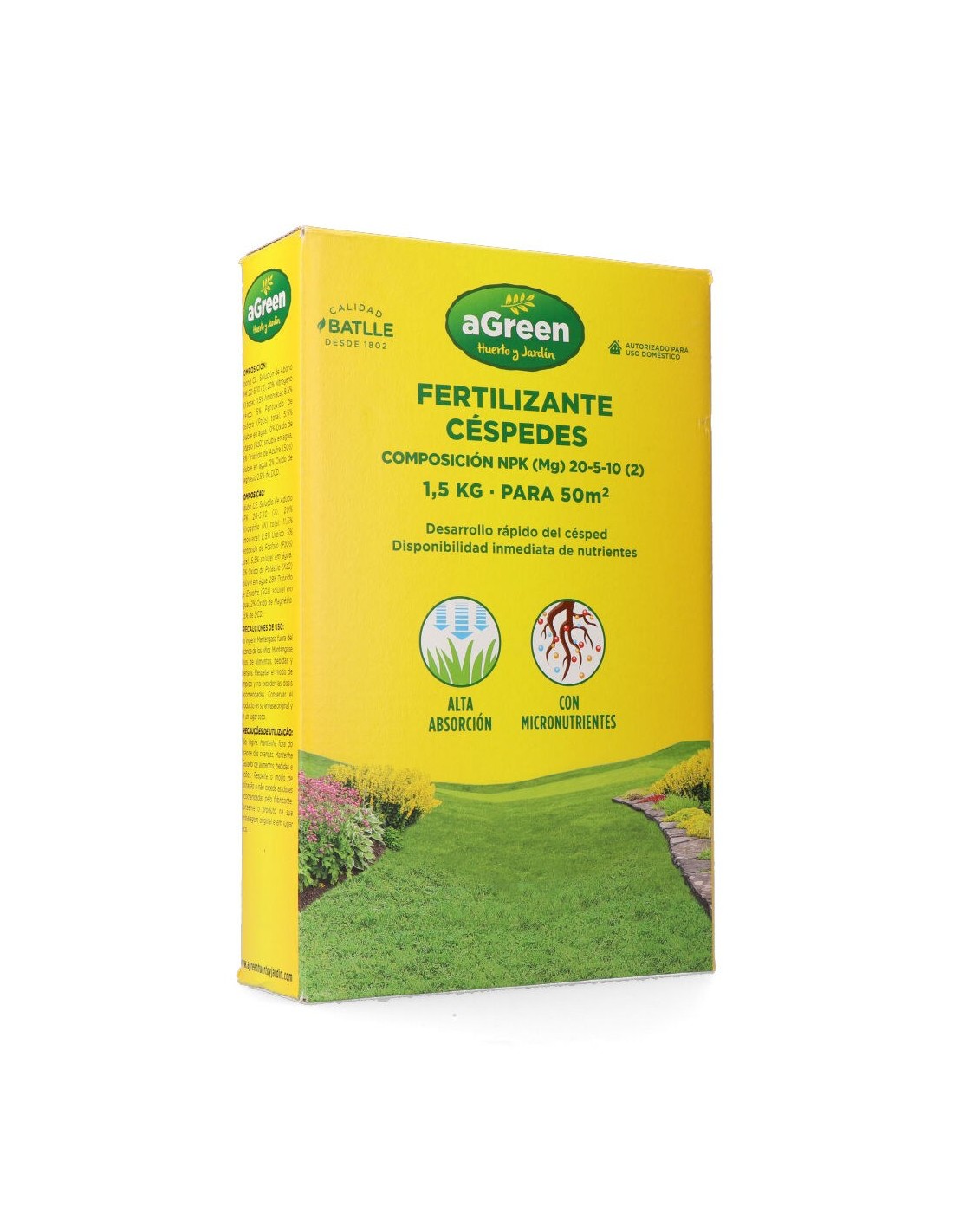 Fertilizante granulado para césped que mejora la nutrición del césped. adecuado para todo tipo de césped. autorizado para uso doméstico. contiene 1,5 kg, que permite tratar hasta 50 m. composición: npk (mg) 20-5-10 (2)