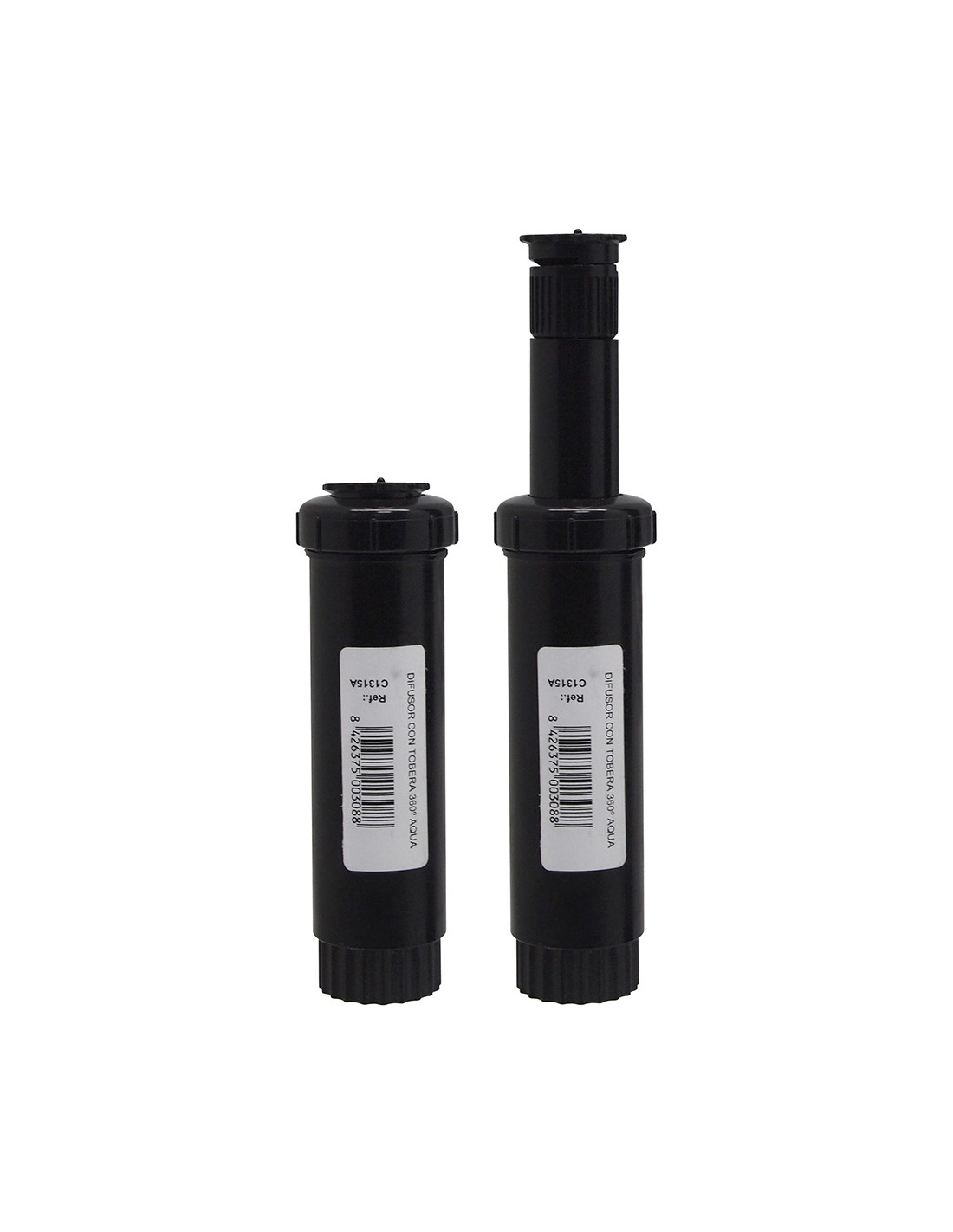 Difusor con tobera (emergente) regulable de 25° a 360° emerge 6cm. alcance: 4 a 4,5m. conexion: ø1/2". presion de 2 a 3bar. material: polietileno. tratamiento anti uv. aqua basic