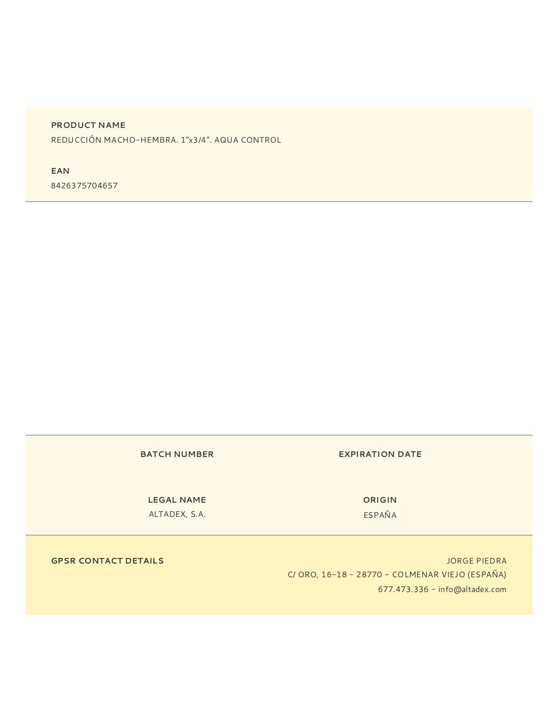 Reducción macho-hembra. 1"x3/4". material: polipropileno. tratamiento anti uv. (contenedor). aqua control