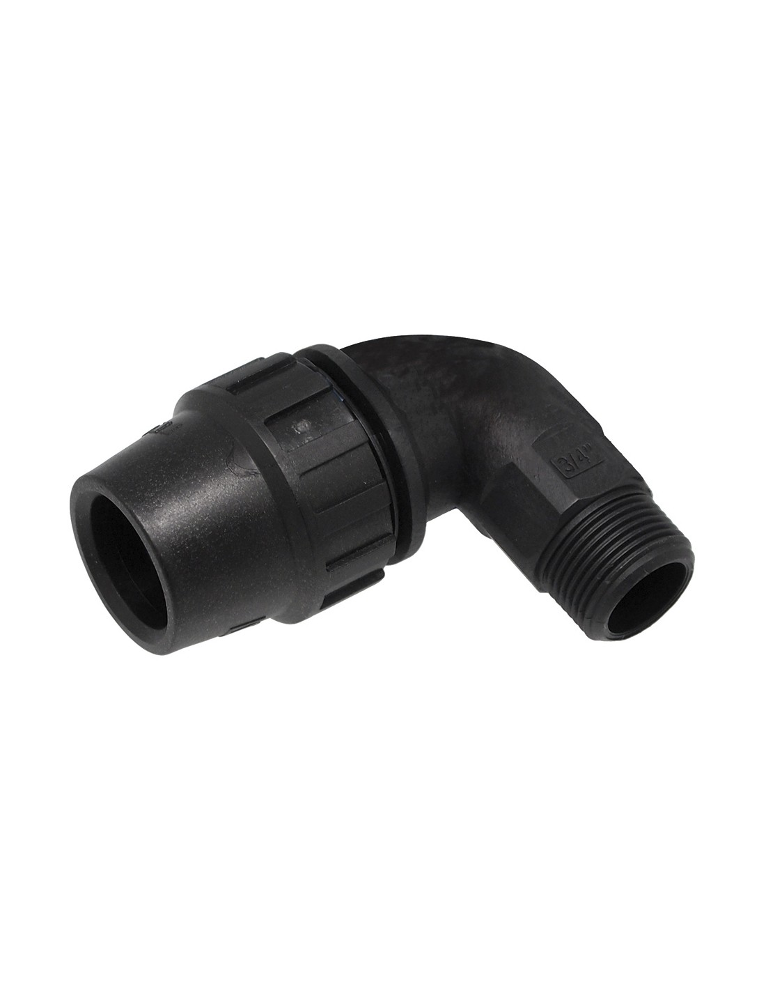 Codo rosca macho 20mm (1/2") material: polietileno (granel etiquetado) tratamiento anti uv. aqua control