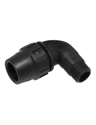 Codo rosca macho 25mm (3/4") material: polietileno (granel etiquetado) tratamiento anti uv. aqua control
