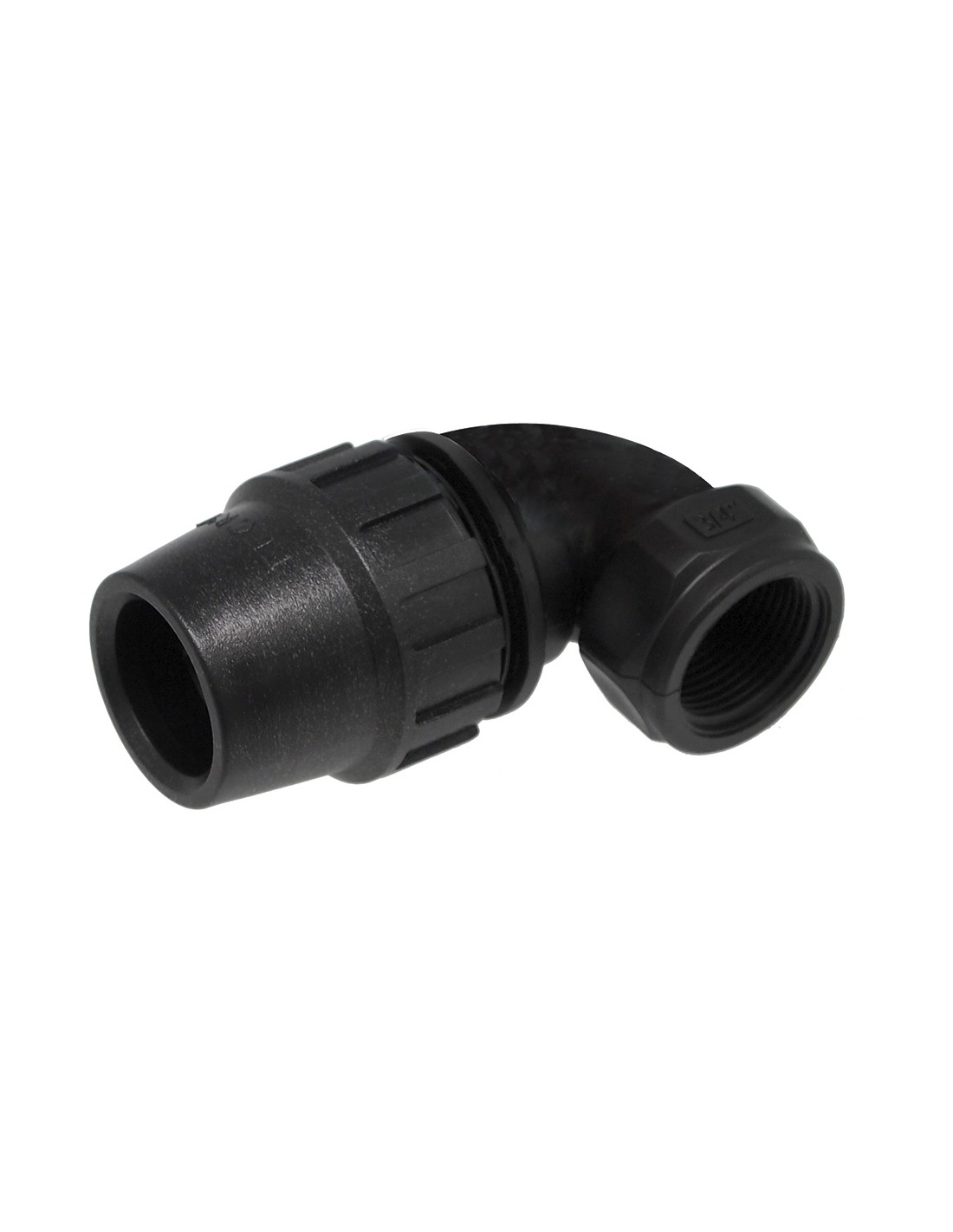 Codo con rosca hembra 20mm (1/2") material: polipropileno (granel etiquetado) tratamiento anti uv. aqua control