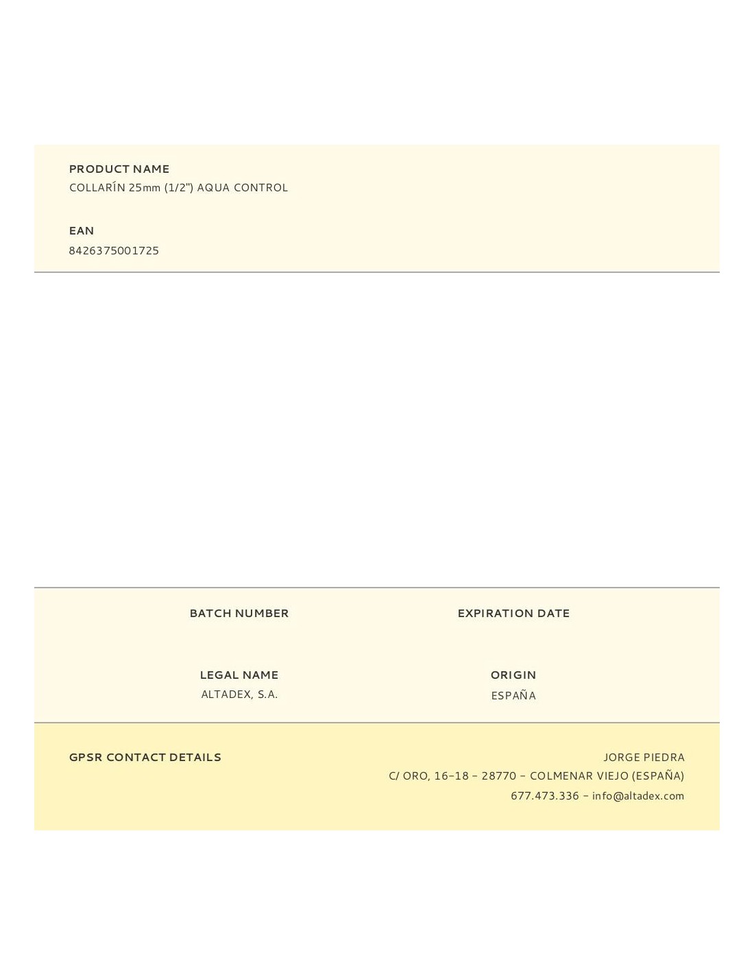 Collarín 25mm (1/2") material: polietileno. tratamiento anti uv. (granel etiquetado) aqua control