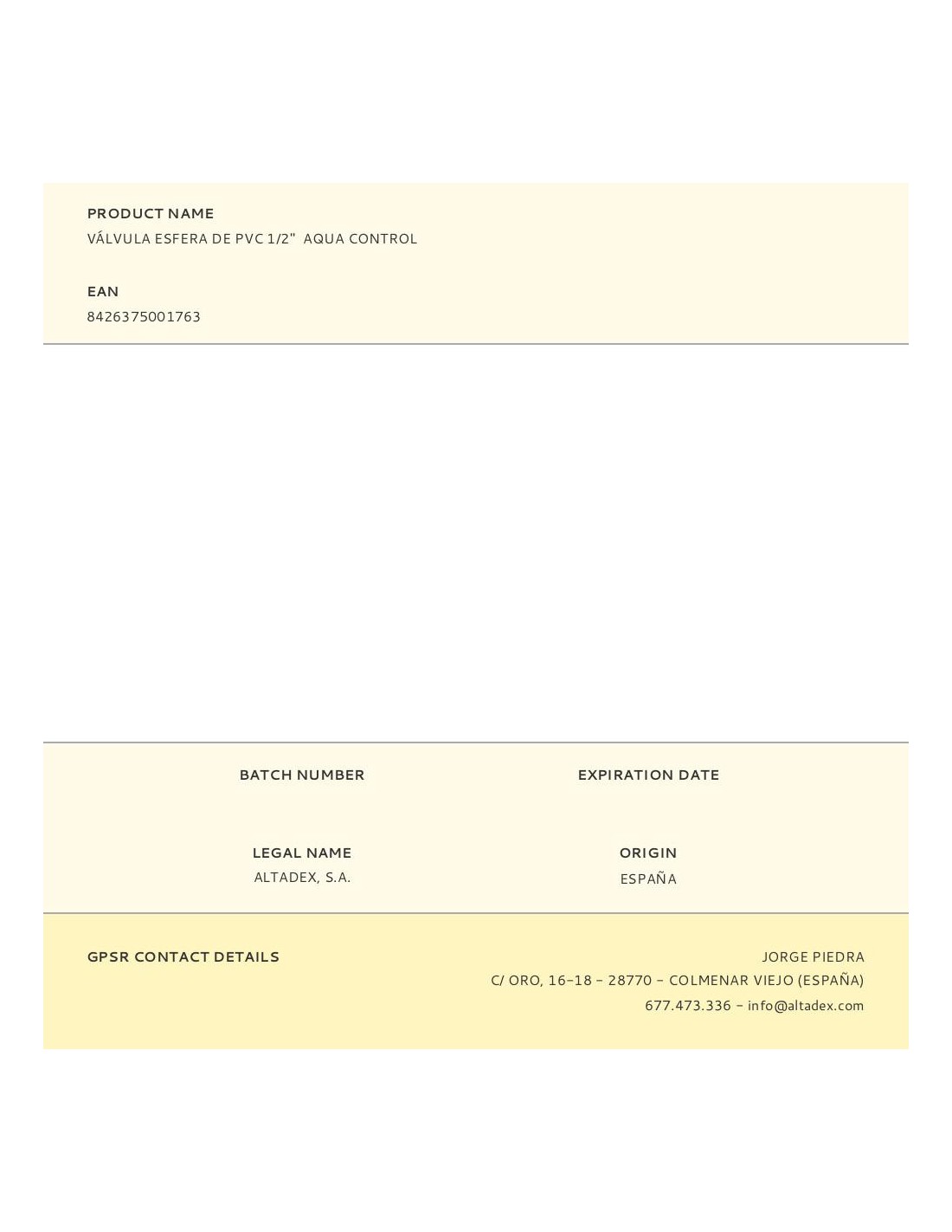 Válvula esfera 1/2" material: pvc. tratamiento anti uv (granel etiquetado). aqua control