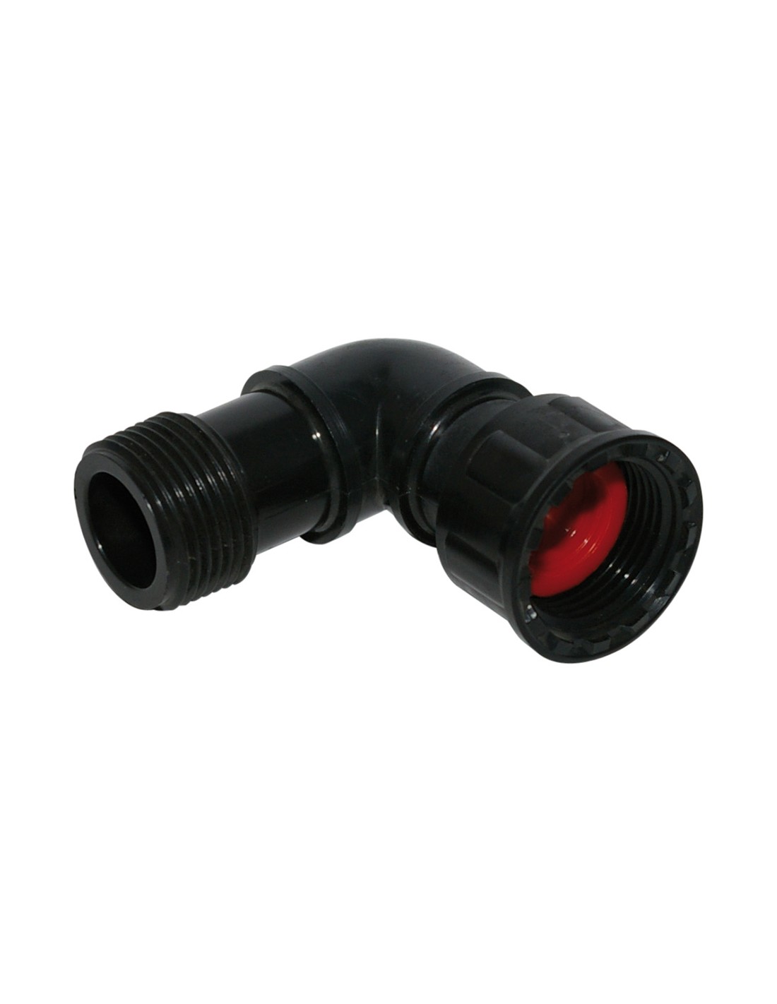 Codo colector rosca loca 1" para ensamblaje rapido de electrovalvulas en grupo. material: polietileno. tratamiento anti uv. aqua center