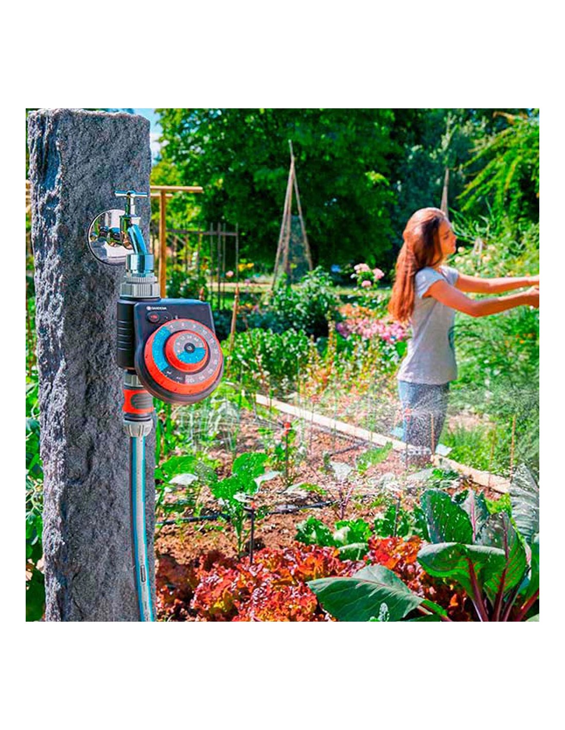 Programador de riego analogico easy plus gardena. control de riego automático con 60 programas, con diferentes frecuencias y duraciones, 16 son combinaciones para el nebulizador de exteriores. duracion de riego de 1 a 120min. funcion manual de riego, panel de control desconectable, funciona con una pila 9v (no incluida). tratamiento anti uv. material: poliporpileno. proteccion contra las heladas.