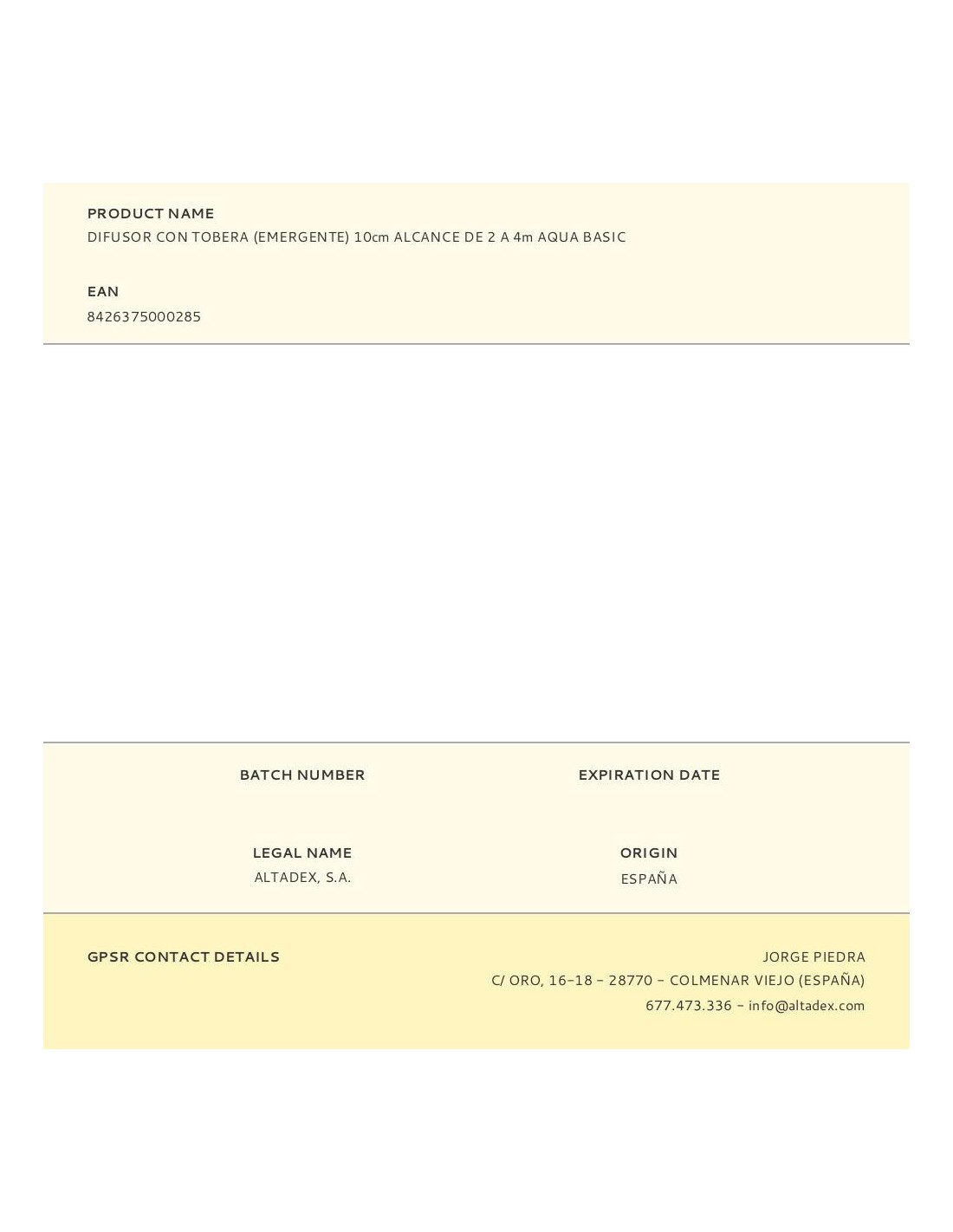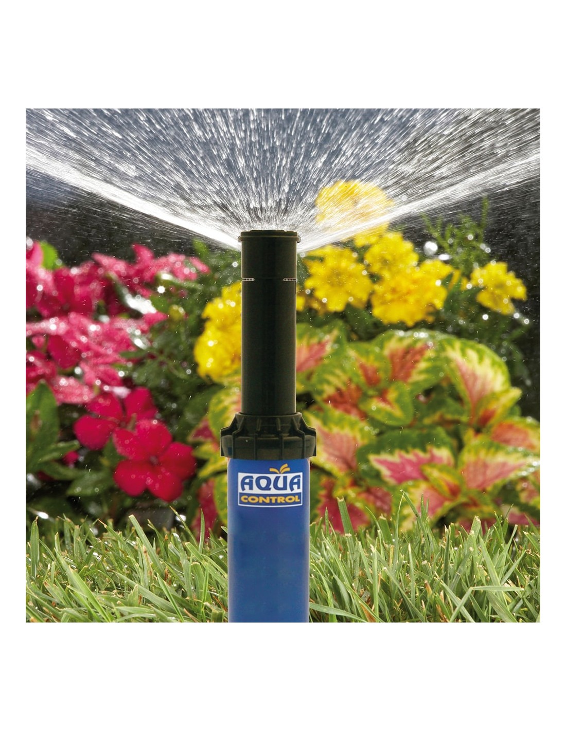 Difusor con tobera (emergente) regulable de 25° a 360° emerge 10cm. alcance: 2 a 4m. conexion: ø1/2". presion de 2bar. material: polietileno. tratamiento anti uv. aqua basic