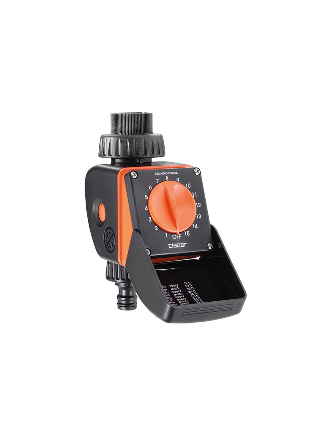 Programador analogico aquauno logica claber. programador de riego de una via absolutamente revolucionario. 15 programas prefijados que se seleccionan girando el monomando. simplemente con girar el mando a cualquiera de los 15 numeros de programa se selecciona el programa de riego en cuestion de segundos. todos los programas de riego estan resumidos en un diagrama pegado en la tapa. dotado de un filtro de red metalica. funciona con una pila alcalina de 9 v suficiente para una estacion completa. los componentes electronicos estan sellados. con una presion de trabajo desde 0,5 a 10bar aquauno logica tiene una calidad 100% controlada y probada.