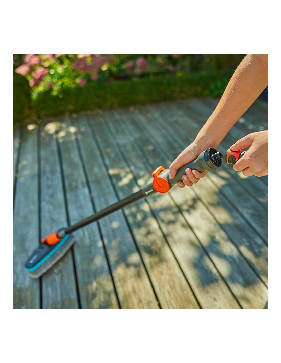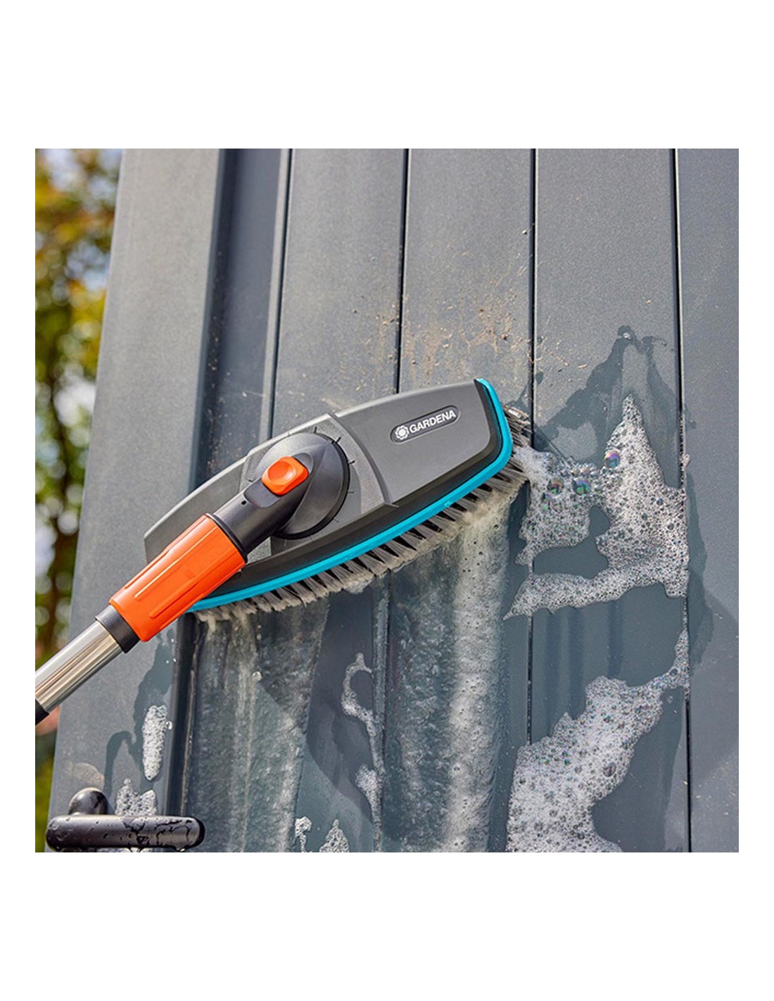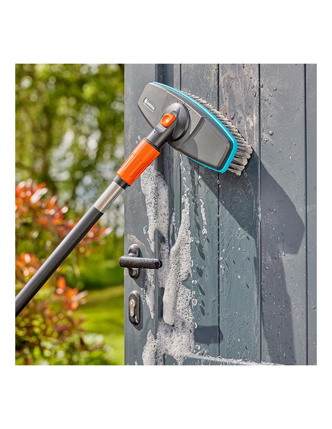 Cepillo de cerdas suaves para superficies delicadas cleansystem 18810-20 gardena totalmente orientable a 360 de 30 en 30, para adaptarse y limpiar la superficie sin esfuerzo. recubierta con una banda de plástico blando alrededor del cepillo, para evitar arañazos.