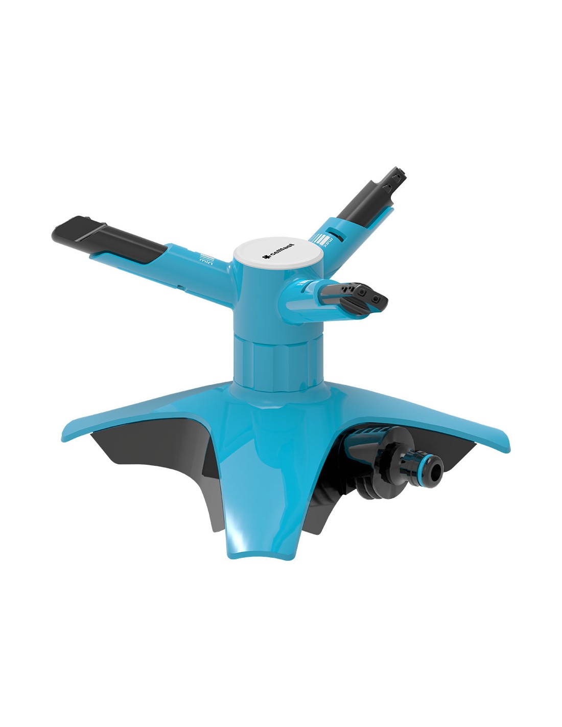 Aspersor rotativo ergo fabricado en abs de alta calidad. a dos bares de presión, alcanza un diametro de riego de hasta 10,5 m y una superfice de hasta 100 m2, teniendo un consumo de 14 l/min. a 4 bares de presión alacanza los 16 m de diametro, que equivale a unos 200 m2 de superficie y gasta unos 22 l/min