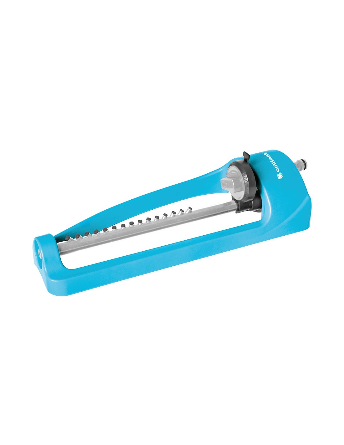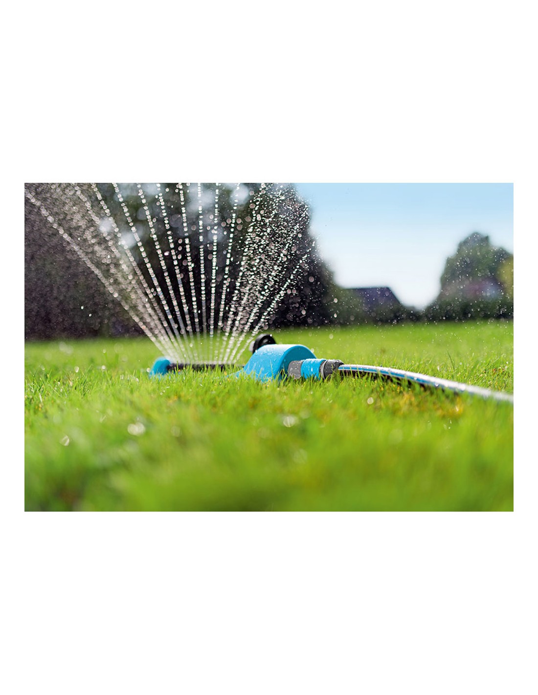 Aspersor oscilante economic de la serie ideal con 15 salidas de agua, control de alcance y control sectorial de riego. a dos bares de presión, alcanza una superficie de 13x13 m, aprox 169 m2, teniendo un consumo de 10,5 l/min. a 4 bares de presión alacanza una superficie de 15x17 m, aprox 255 m2 y gasta unos 16,5 l/min.