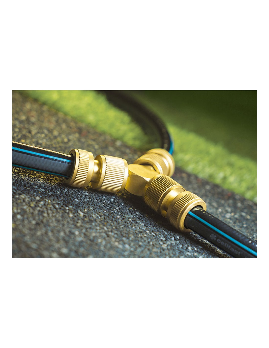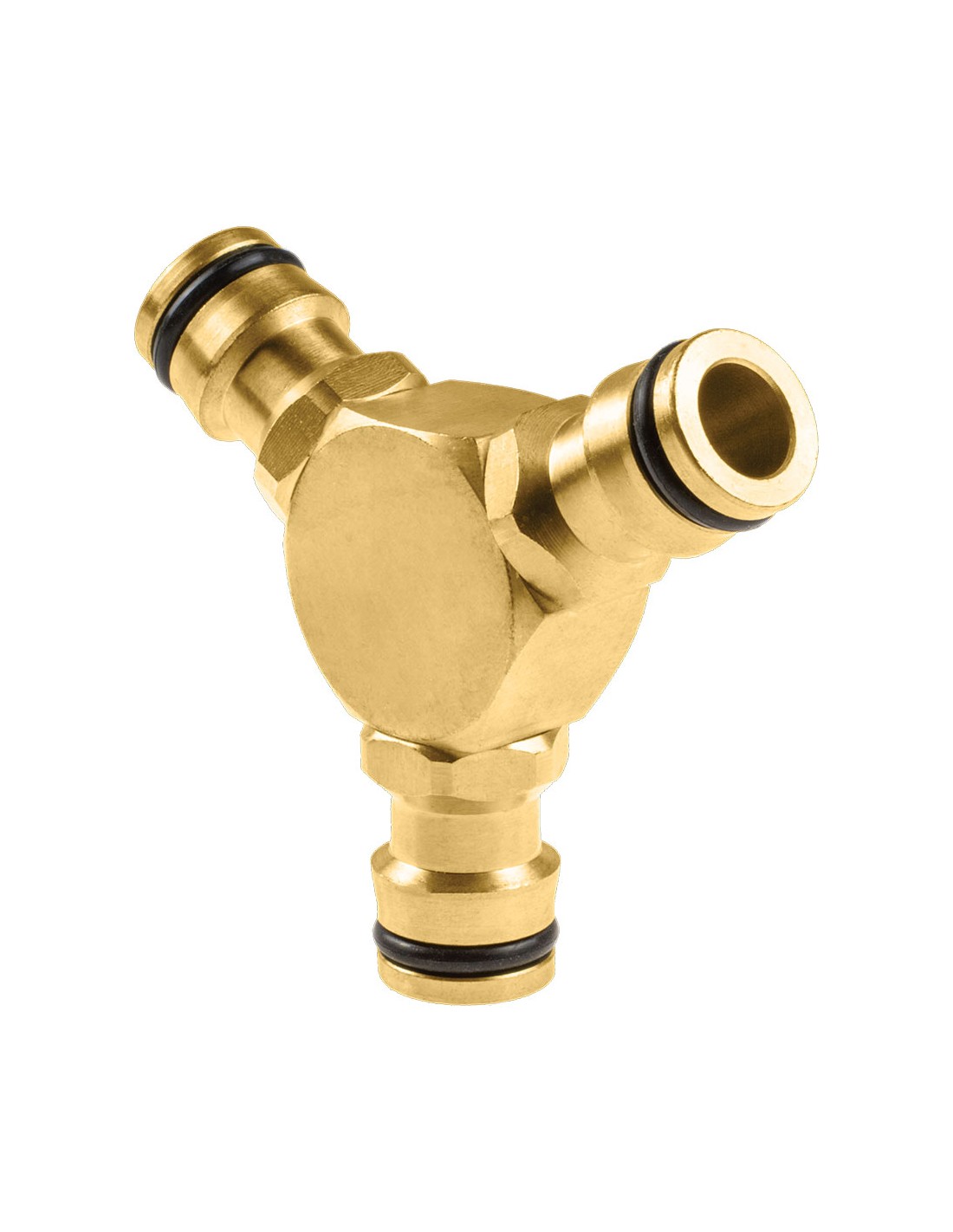 Extension triple de conector rápido fabricado en latón de alta calidad. permite la conexión de tres conectores rápidos facilitando así el empalme entre tres mangueras, pudiendo así, por ejemplo, dar caudal a dos aspersores con una sola toma de agua.
