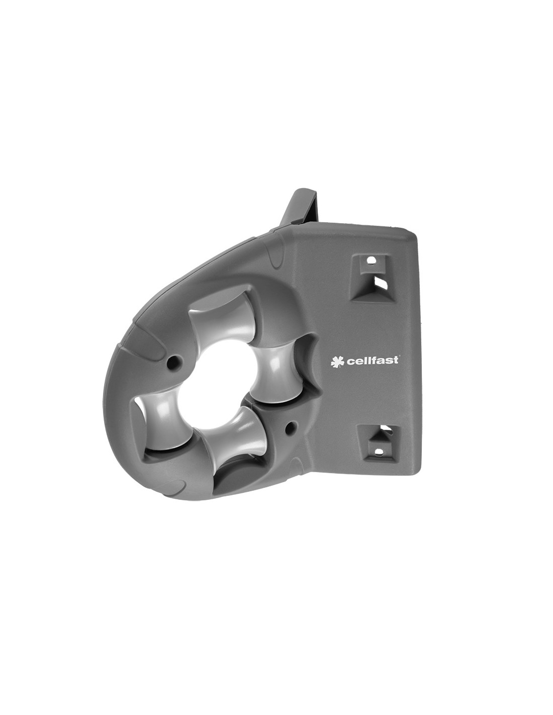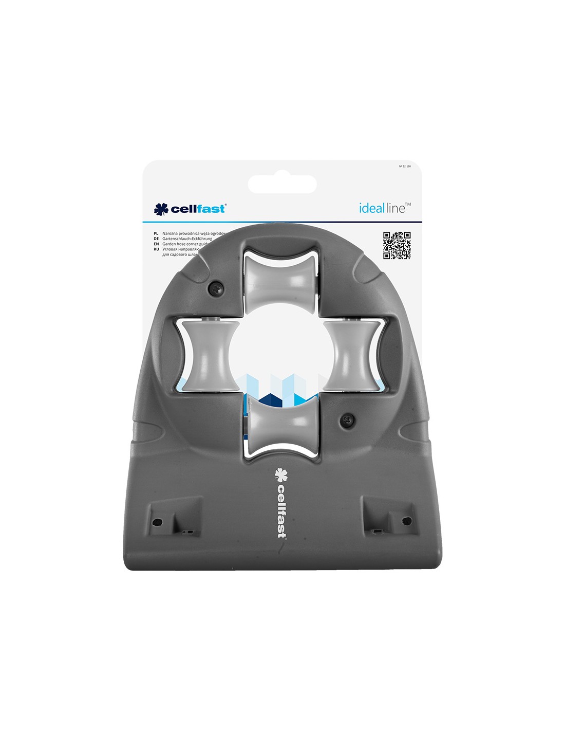Guía de manguera para esquina, ideal, evita enredos y roces (por ejemplo en vallas, esquinas de los edificios). 4 rodillos permiten el movimiento en cualquier dirección. con diámetro exterior máximo - 55 mm. dos variantes de montaje permiten montar las guías en esquinas o superficies planas