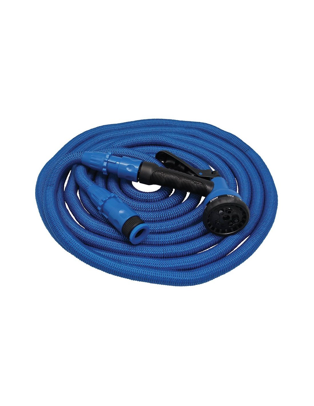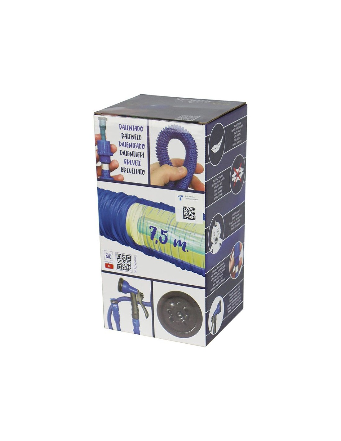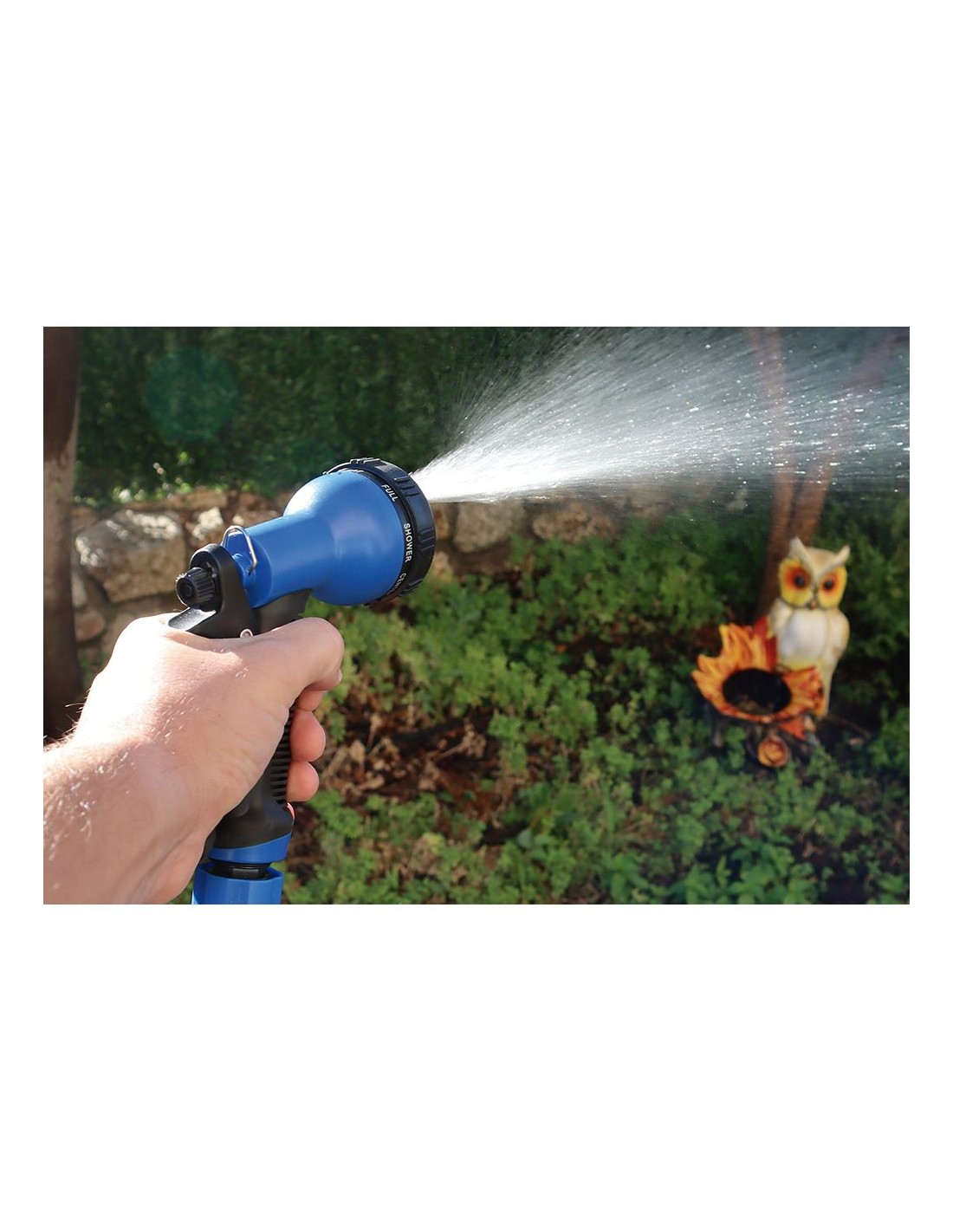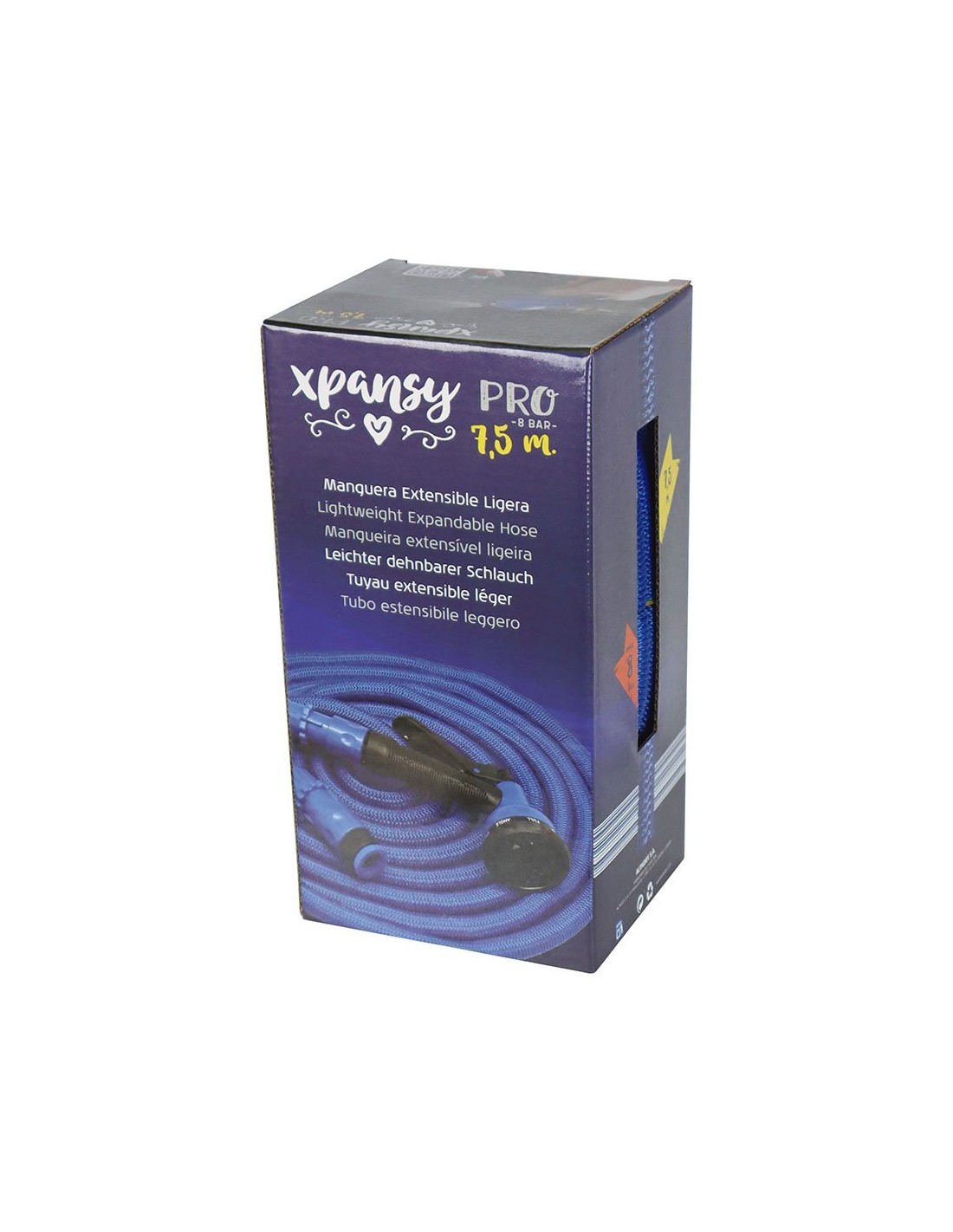 Manguera extensible ligera, modelo xpansy pro, color azul incluye 1 conector rápido, adaptador de grifo de ¾ y ½ pulg. y pistola con 7 formas de riego con presión de 8 bares y diámetro 12 mm con enlaces anti-rotura, no hace nudos 7,5 m