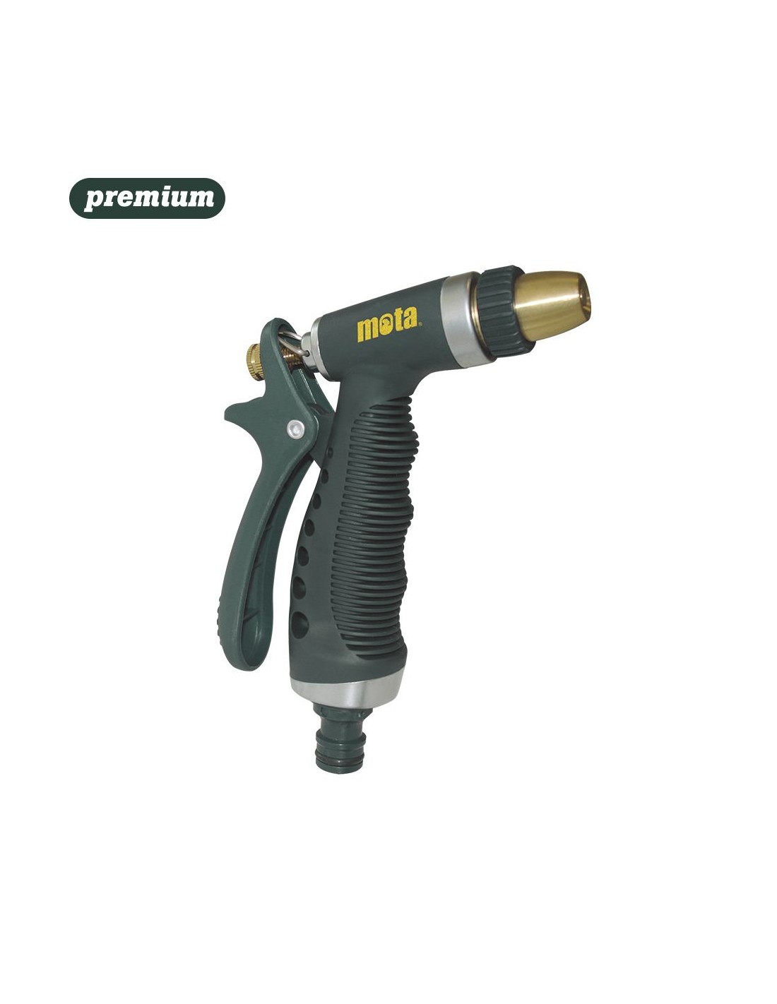 Pistola de riego aluminio ar21 con conector. chorro regulable y boquilla de ½ pulg. para riego o limpieza. cuerpo con aleacion de aluminio con cubierta de goma. gatillo plastico con bloqueo. caudal ajustable de jet a bruma. se recomienda el uso de conector rapido de manguera con bloqueo mota (ar31). presentacion en blister