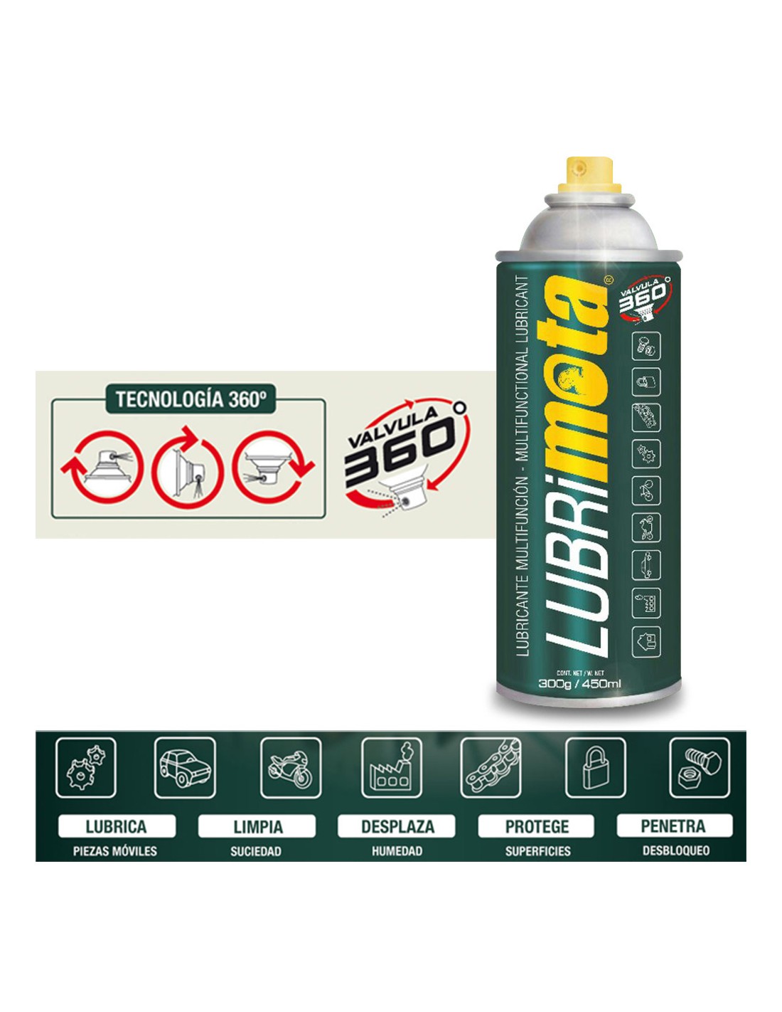 Lubricante multifuncion lubrimota 450ml 300g con valvula 360 mota