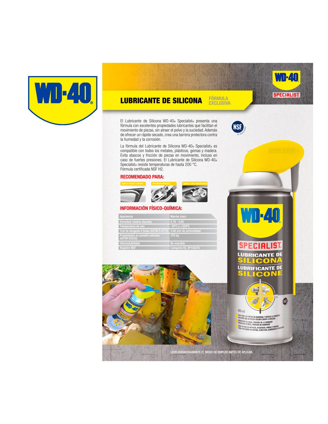Specialist lubricante de silicona wd40 400ml recomendado para gomas de puertas y ventanas, herramientas manuales, correas y cintas transportadoras...