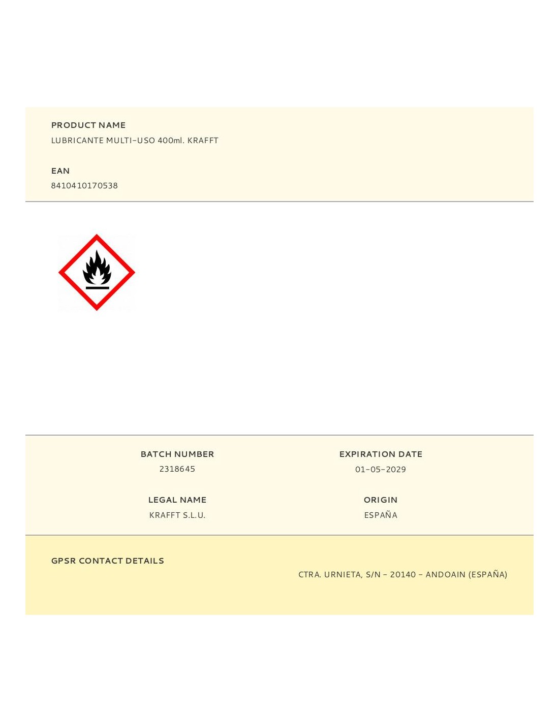Lubricante multi-uso 400ml., lubricante, anti-humedad, anti-corrosión, desbloqueante, penetrante. lubrica cerraduras, bisa[1]gras y otros mecanismos. desplaza el agua y facilita el arranque de motores húmedos. protege equipos electrónicos y eléctricos. suelta piezas oxidadas y agarrotadas. protege contra la corrosión. krafft