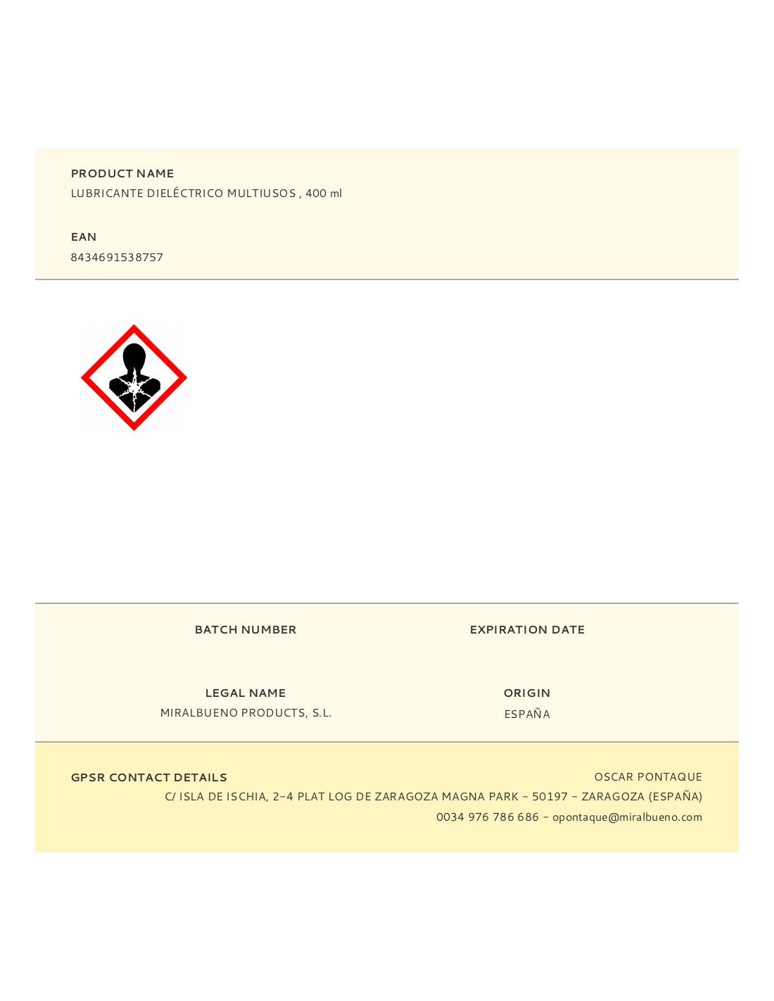 Lubricante dieléctrico multiusos , 400 ml. formato spray con teón. diseñado para desincrustar, lubricar y aflojar mecanismos y piezas móviles. protección contra la oxidación y la corrosión