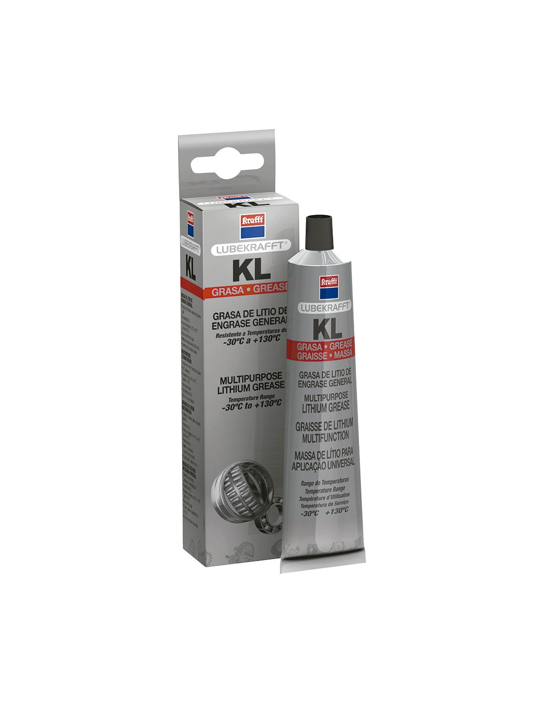 Grasa lubricante de uso general a base de aceite mineral de alto grado de refino y jabón de litio, contiene inhibidores de oxidación, corrosión y aditivos antidesgaste, especialmente formulada para rodamientos, cojinetes lisos, articulaciones, guías, husillos, etc. no se elimina con el agua, rango de temperaturas -30 ° / +130° c, contiene 150 g