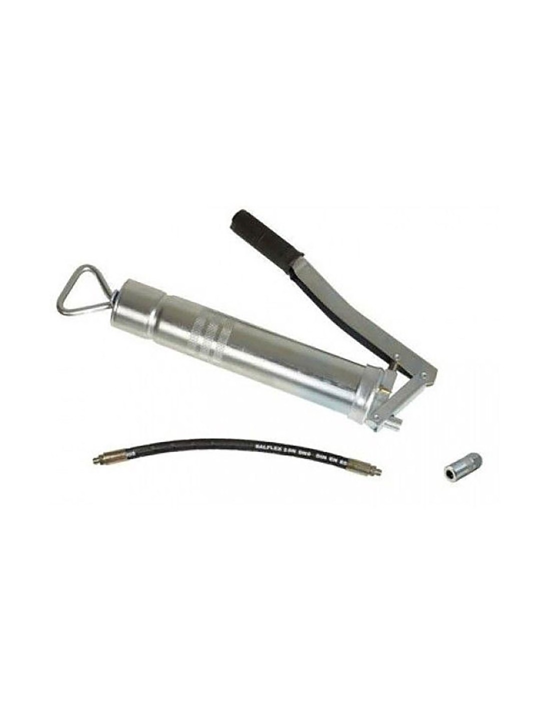 Bomba manual de engrase, de nuevo diseño para aplicación de grasa. depósito metálico de 500 cc. equipada con válvula purgadora de aire que permite el llenado mediante cartucho, granel o dispensador. sistema de fijación de varilla mediante palanca de bloqueo (trinquete), que permite recoger la varilla con el depósito lleno de grasa. indicada para trabajos de lubricación y mantenimiento profesional
