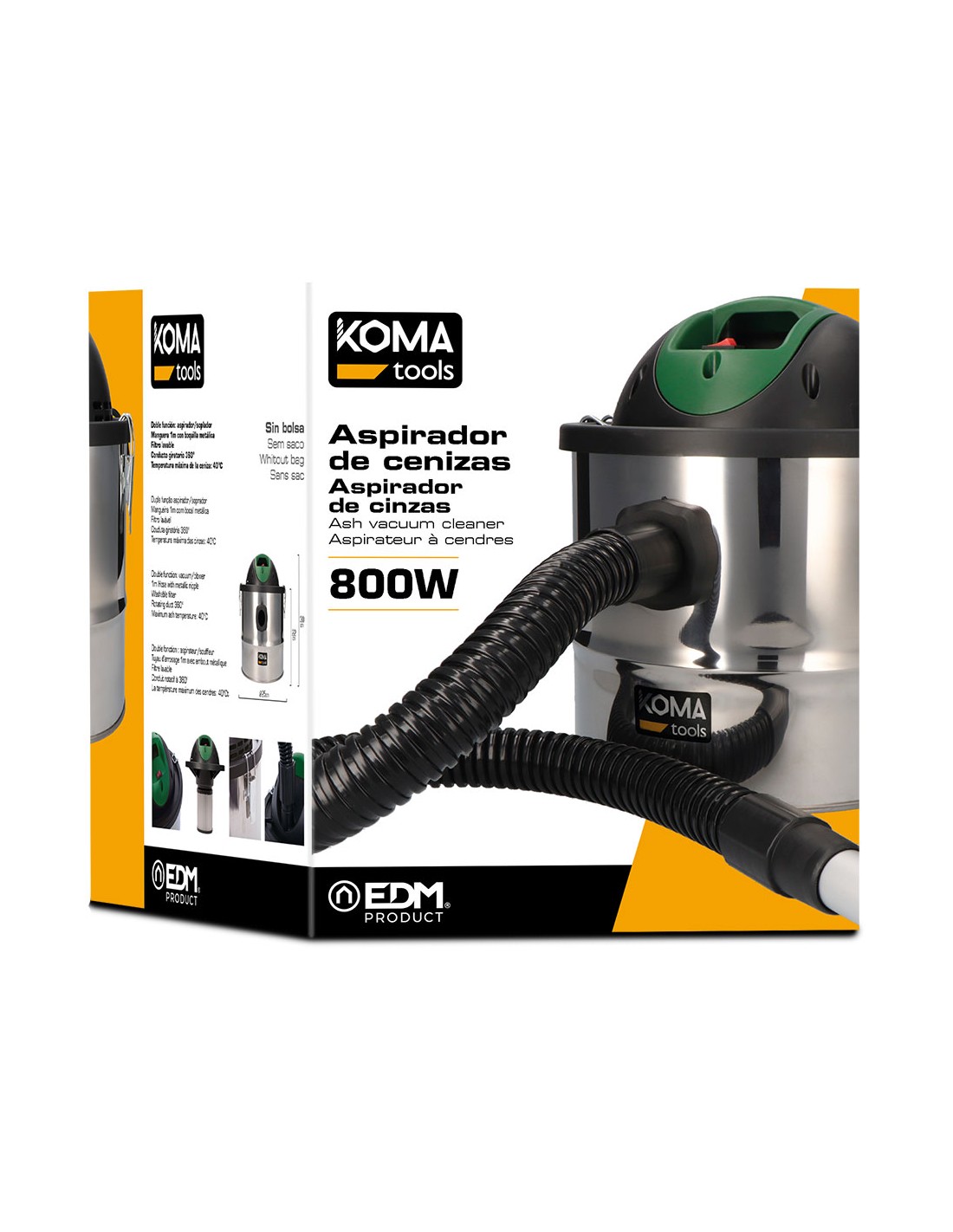 Aspiradora de cenizas. potencia: 800w 10 l. 2m de cable. filtro lavable. 1m manguera de aspirar. conducto giratorio 360°. temperatura maxima de la ceniza 40°c. 220-240v. as-800. dimensiones: ø25 x 30 cm
