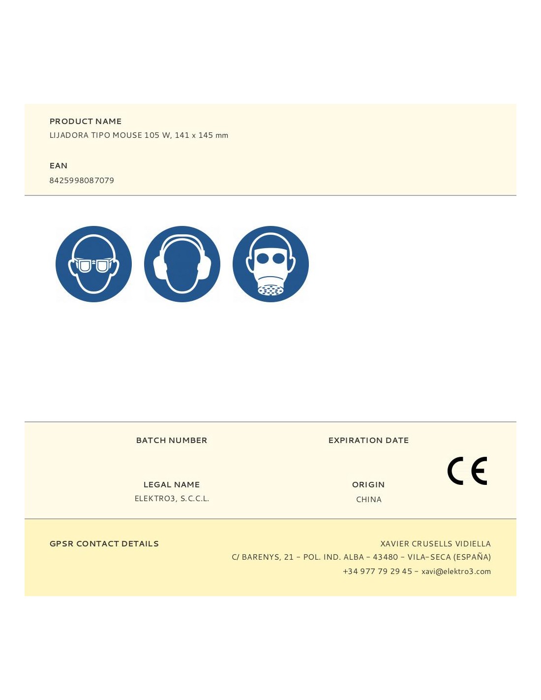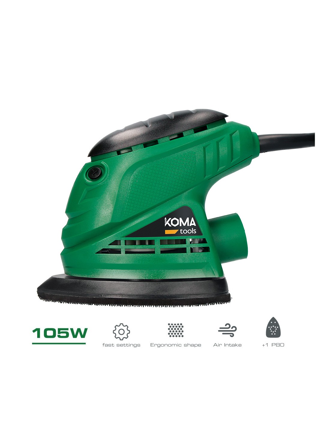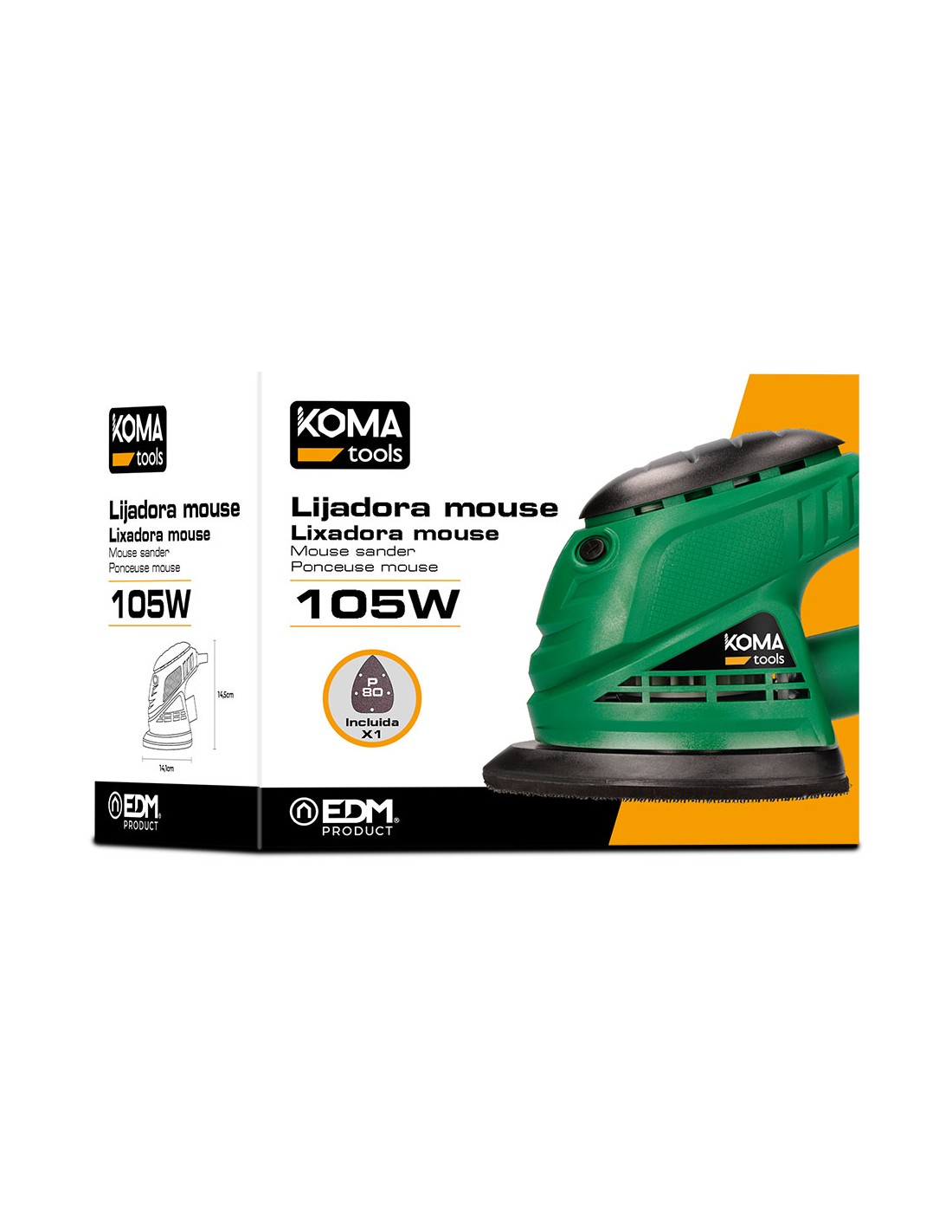 Lijadora tipo mouse eléctrica potencia: 105 w velocidad en vacio 0 a 12000 rpm mango ergonómico de tacto suave 2 m de cable toma de aspiración accesorios: 1 lija p80 + boquilla de conexión de aspirador 230/240v 50hz, lm-105, 141 x 145 mm