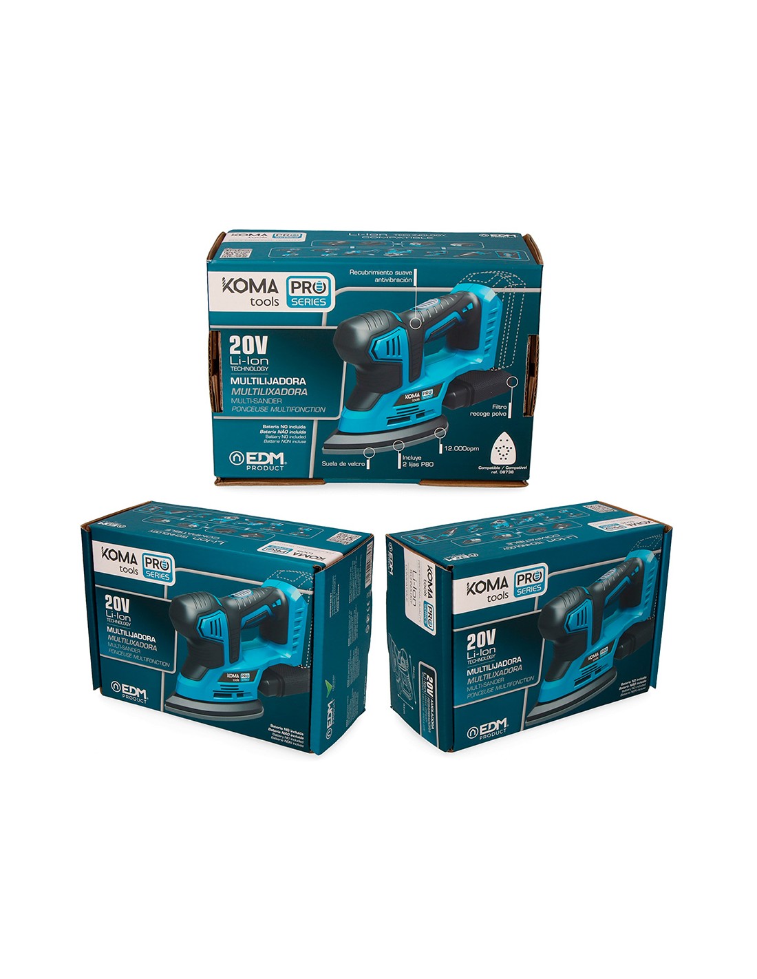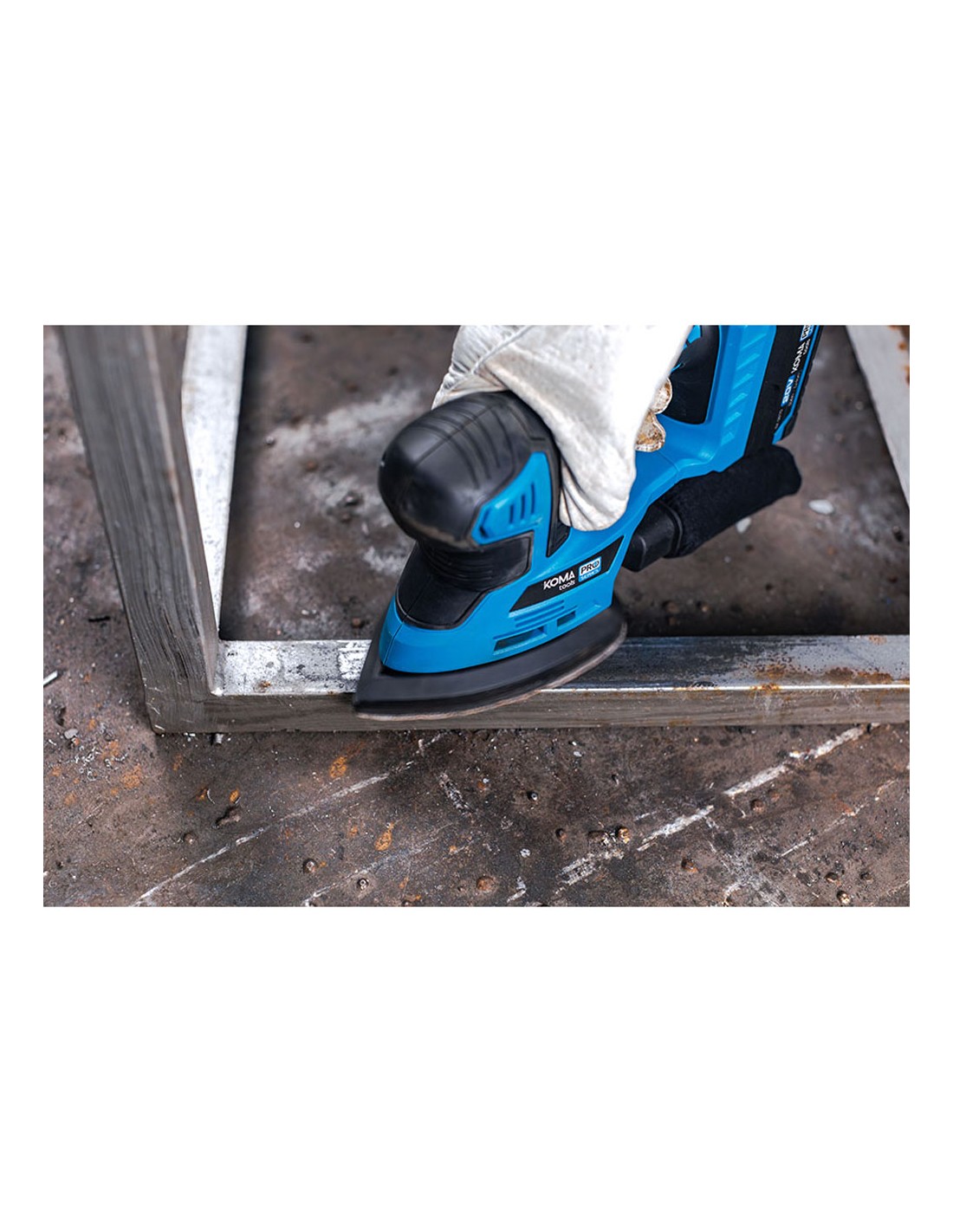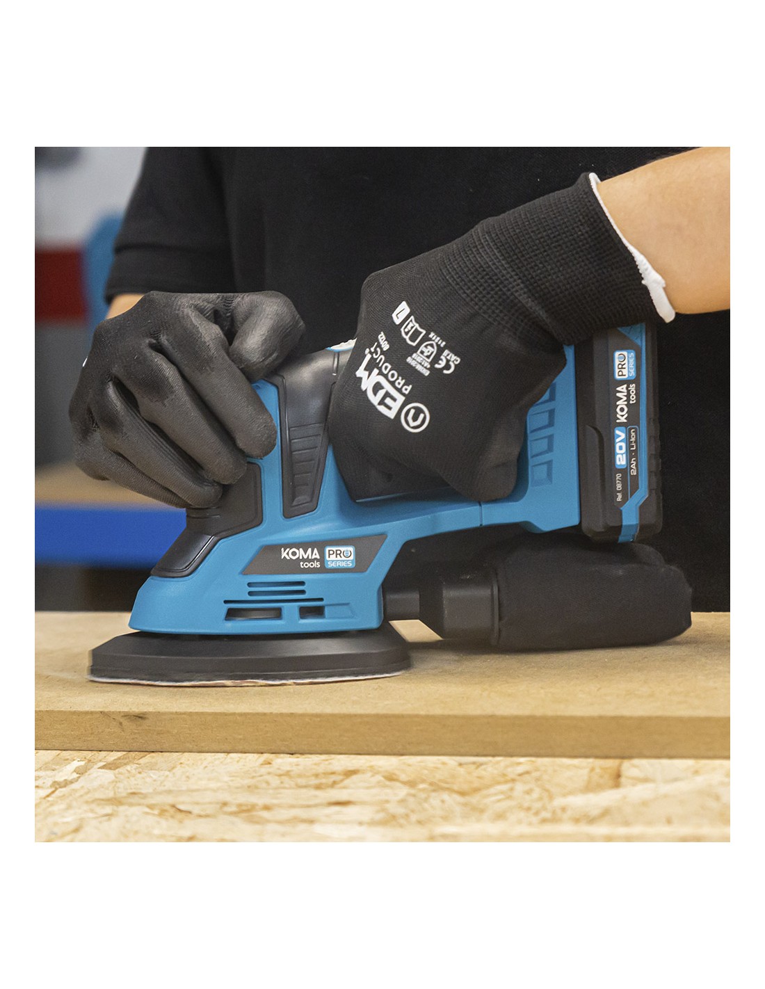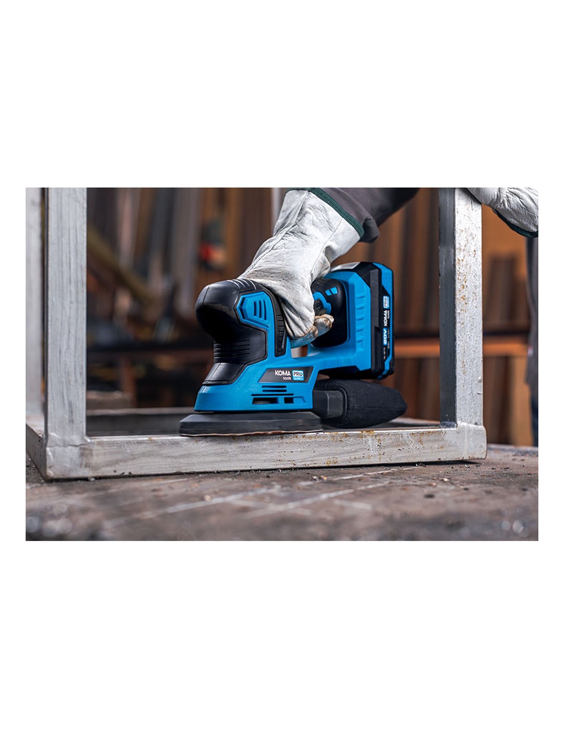 Lijadora de bateria li-on. potencia: 20 v y 2,0a. sin batería ni cargador. 1 velocidad de 0 a 12000rpm. mango ergonomico de tacto suave antivibracion. suela de velcro. accesorios: filtro recoge polvo + 2 lijas p80. 20v-lm. dimensiones: 20,4 x 15,5 cm