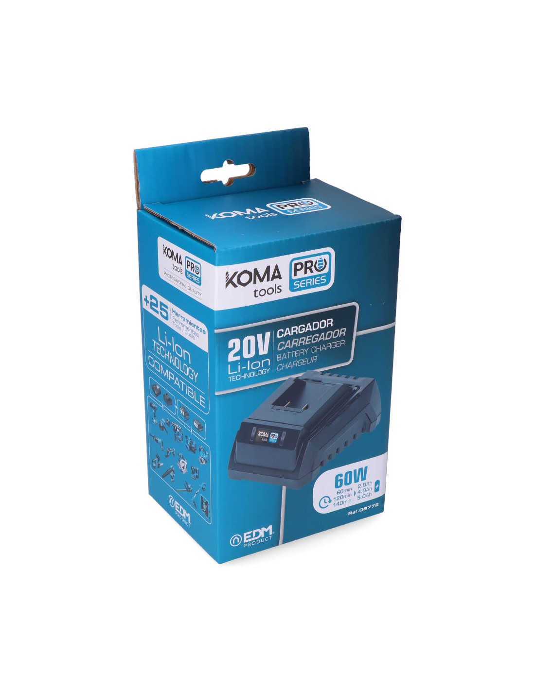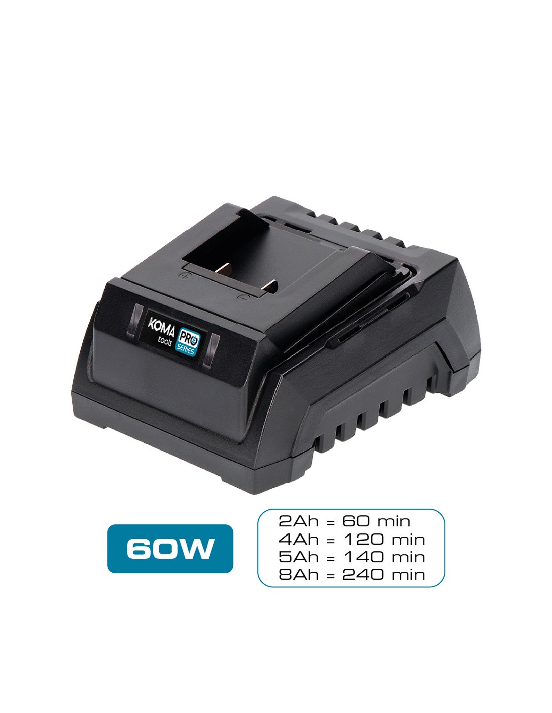 Cargador de bateria 20 v 60 w 2,3 a. voltaje: 100-240v~ 50/60 hz. con indicador de carga. tiempo de carga bateria de 2.0 ah 60 min bateria de 4.0 ah 120 min bateria de 5.0 150 min bateria 8.0 ah 240 min 20v-cb60. 10,3 x 7 x 13,5 cm